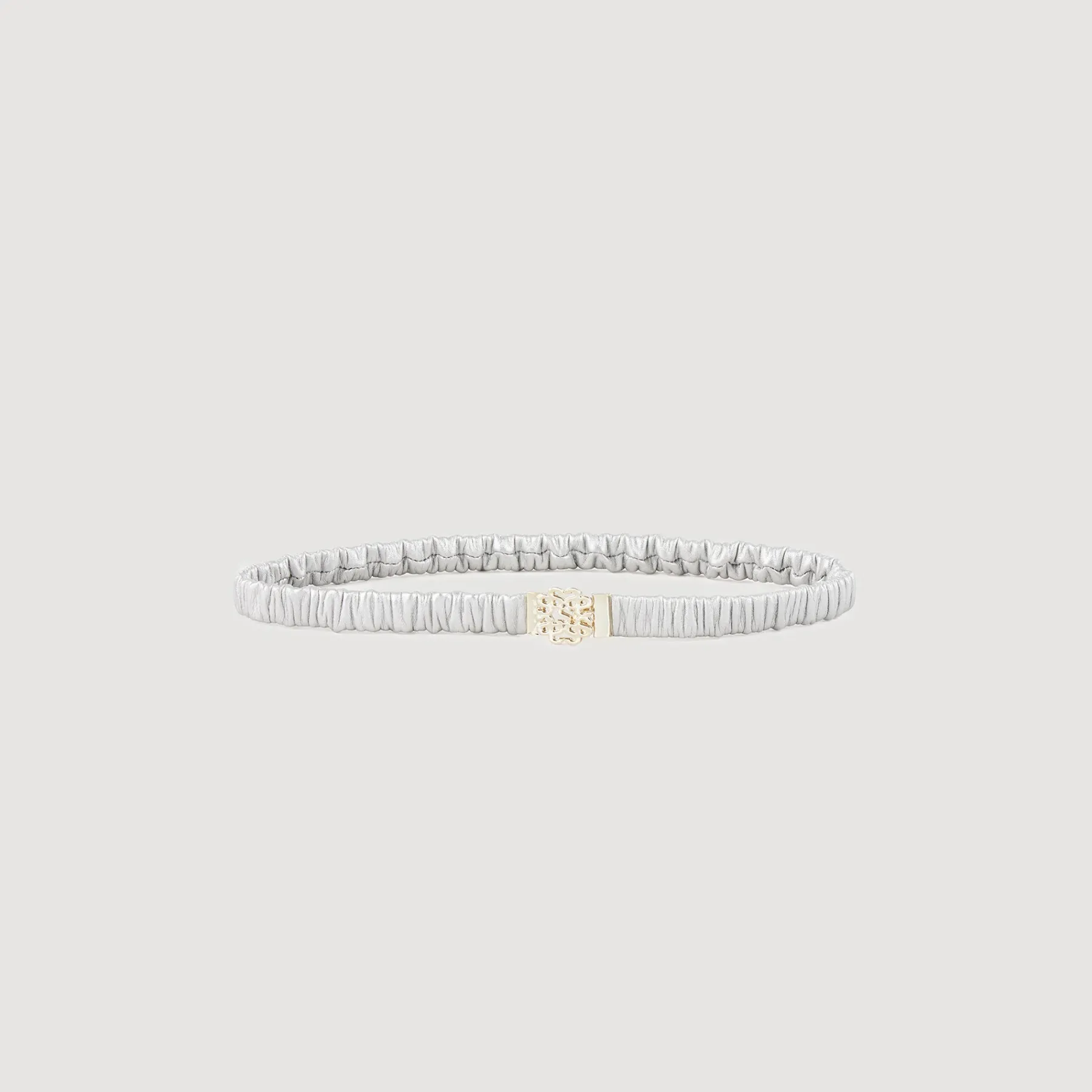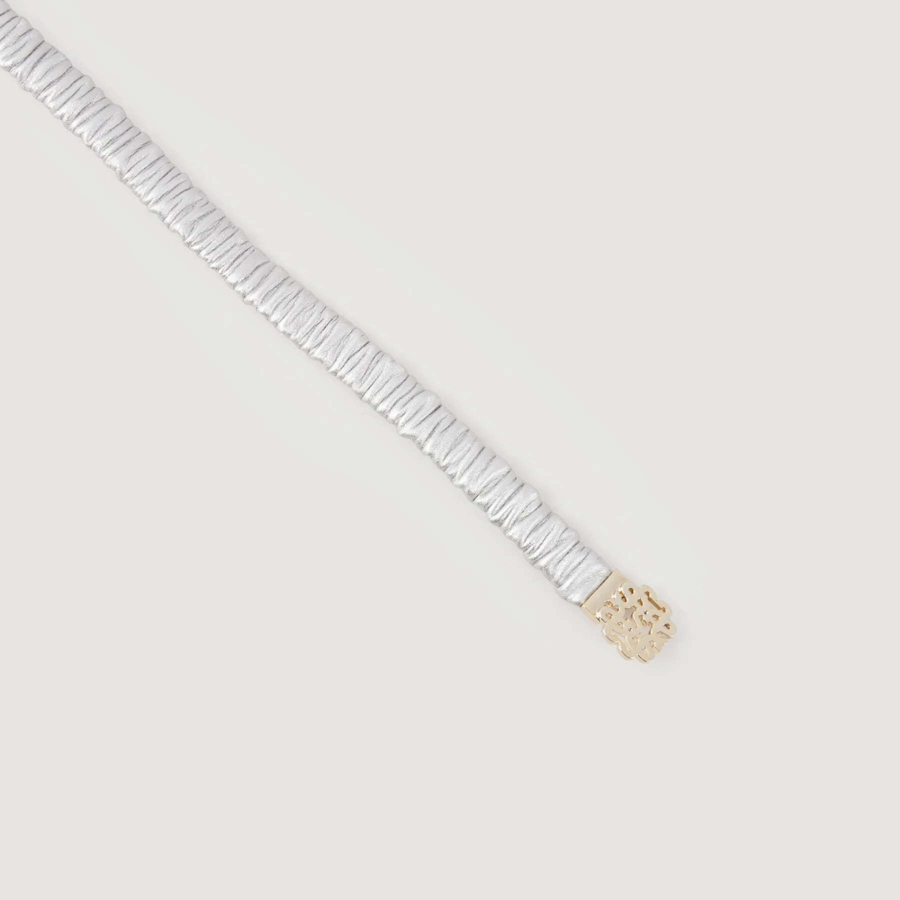 Gathered elasticated metallic leather belt with a double S logo buckle.