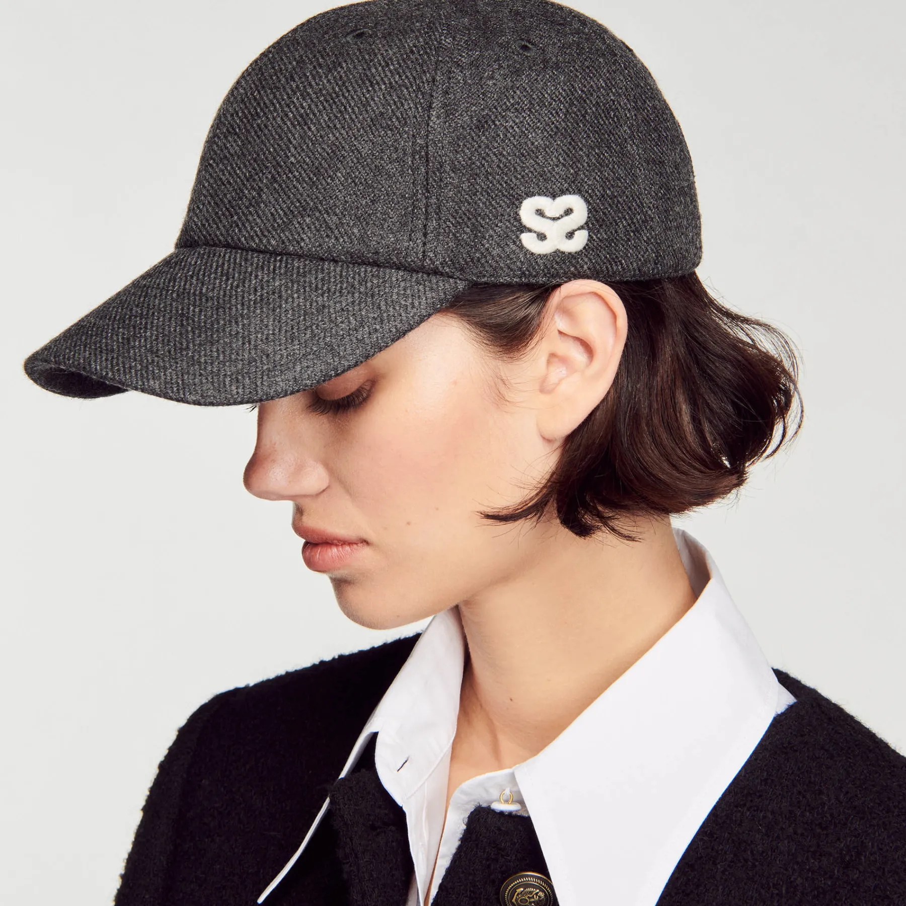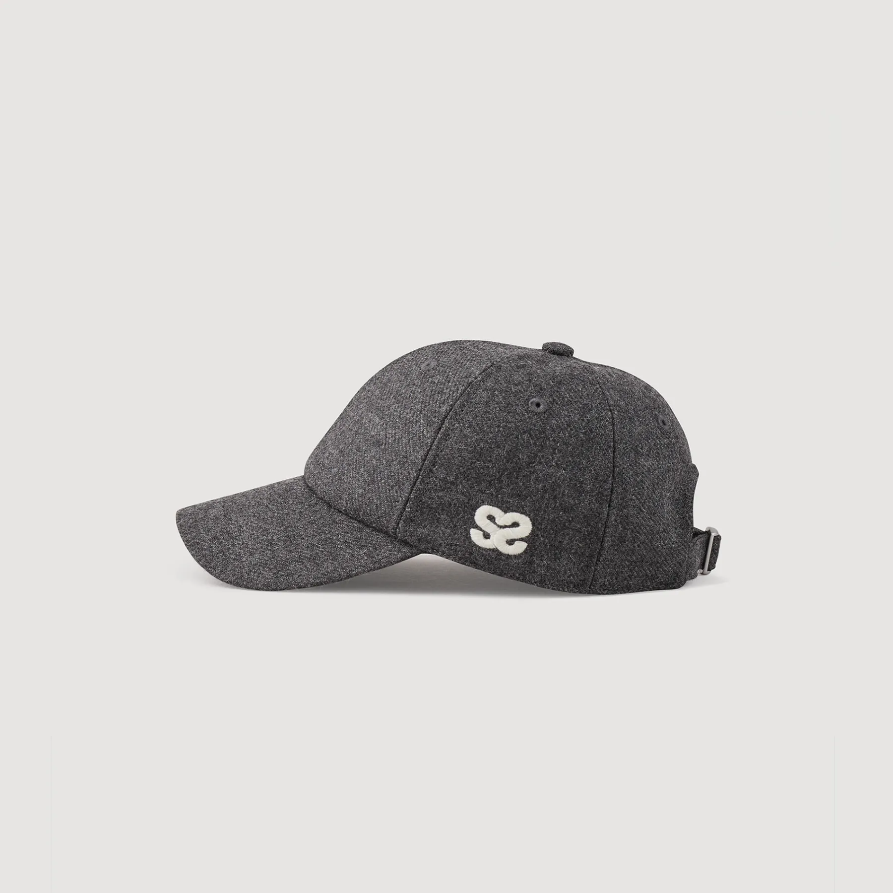 Plain wool cap embellished with contrasting double S embroidery on the side and an adjustable strap.