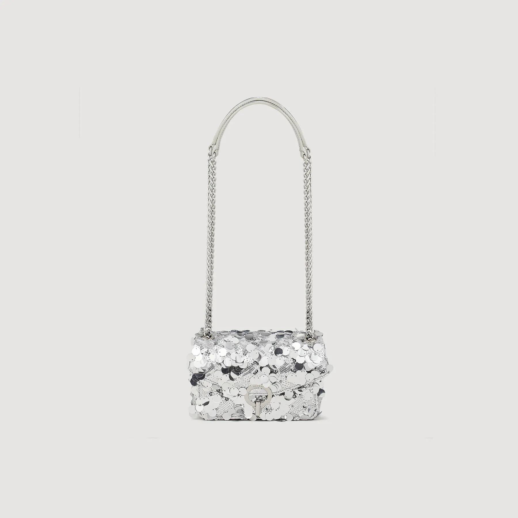 The classic YZA bag now comes in a mini version embellished with the maximum number of sequins and dots. Fitted with a signature gold clasp and practical compartments, it features a chain and leather shoulder strap that can be worn in a variety of ways: long for crsbody wear or doubled up for carrying on the shoulder.