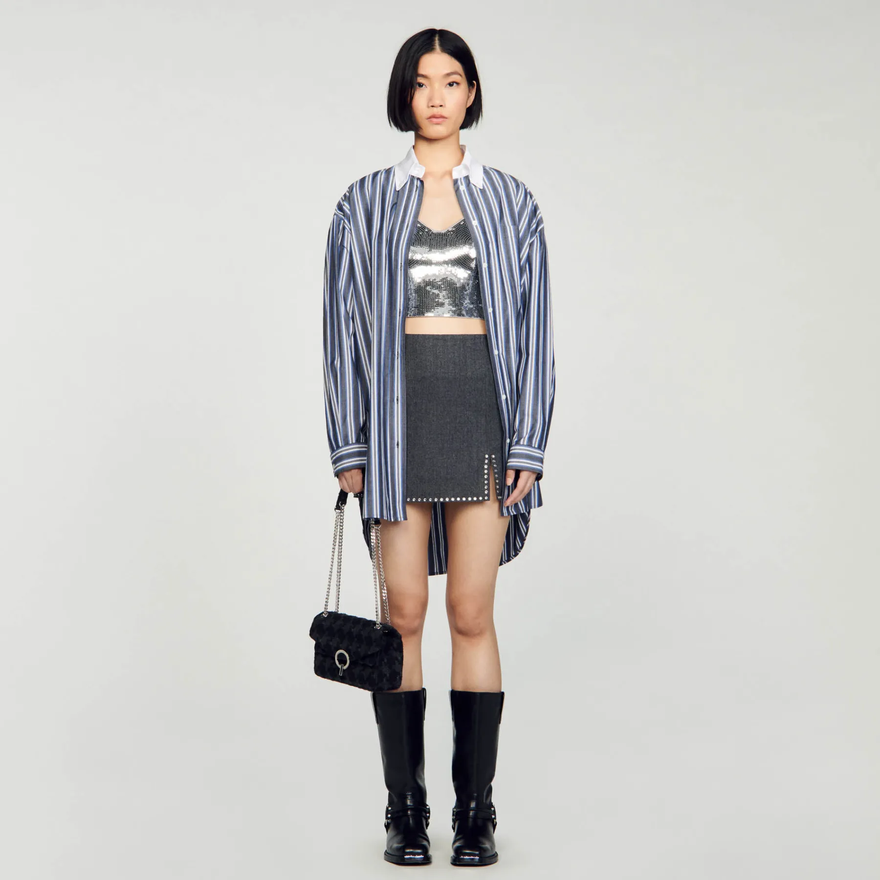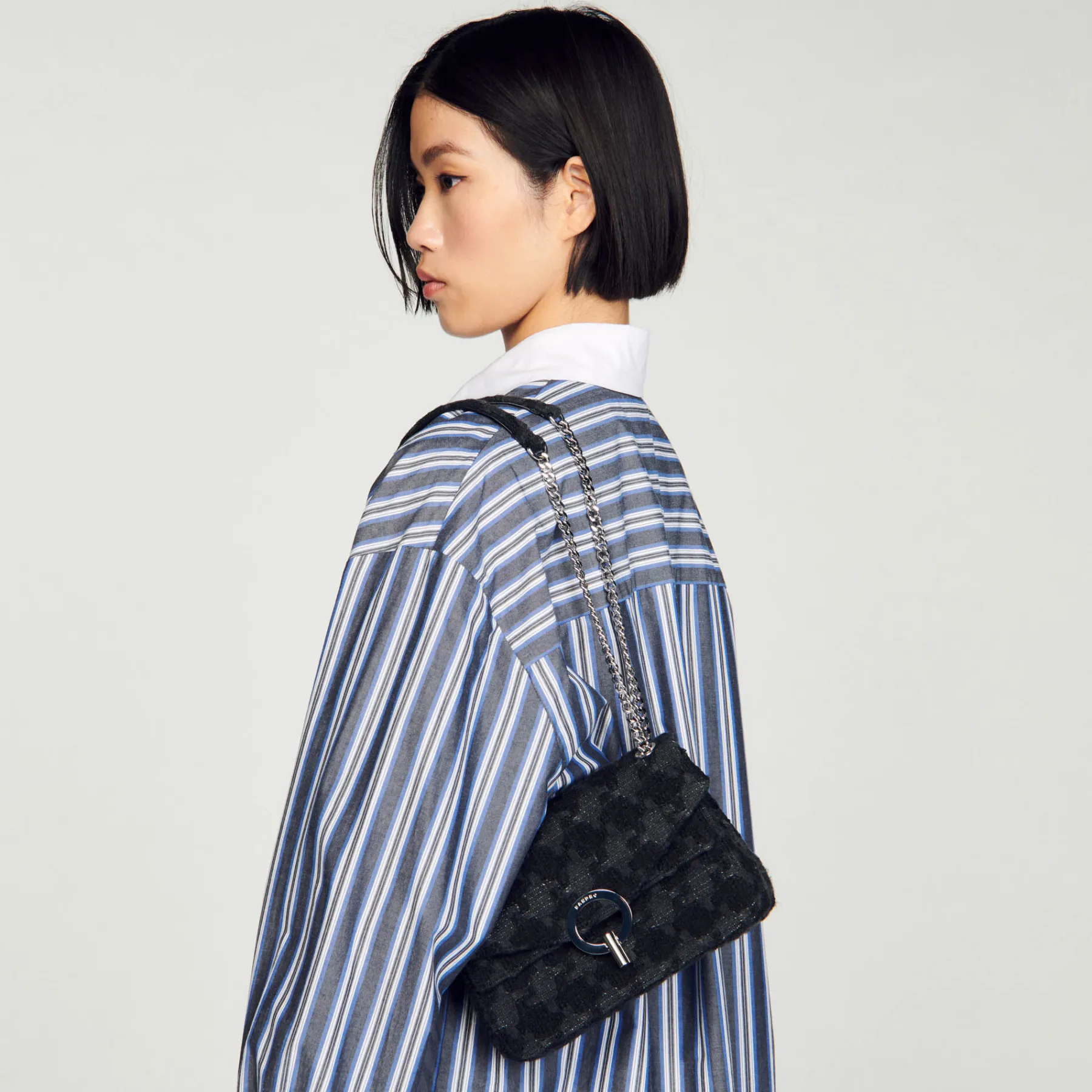 The classic YZA bag is now available in a tweed version. Fitted with a signature gold clasp and practical compartments, it features a chain and leather shoulder strap that can be worn in a variety of ways: long for crsbody wear or doubled up for carrying on the shoulder.