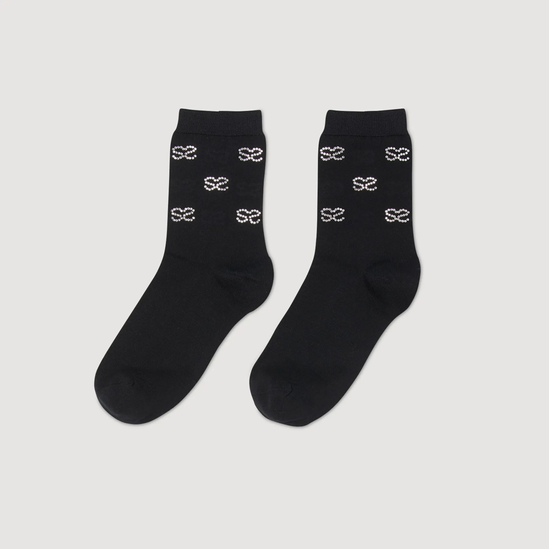 Thin ribbed ankle socks embellished with double S rhinestones.