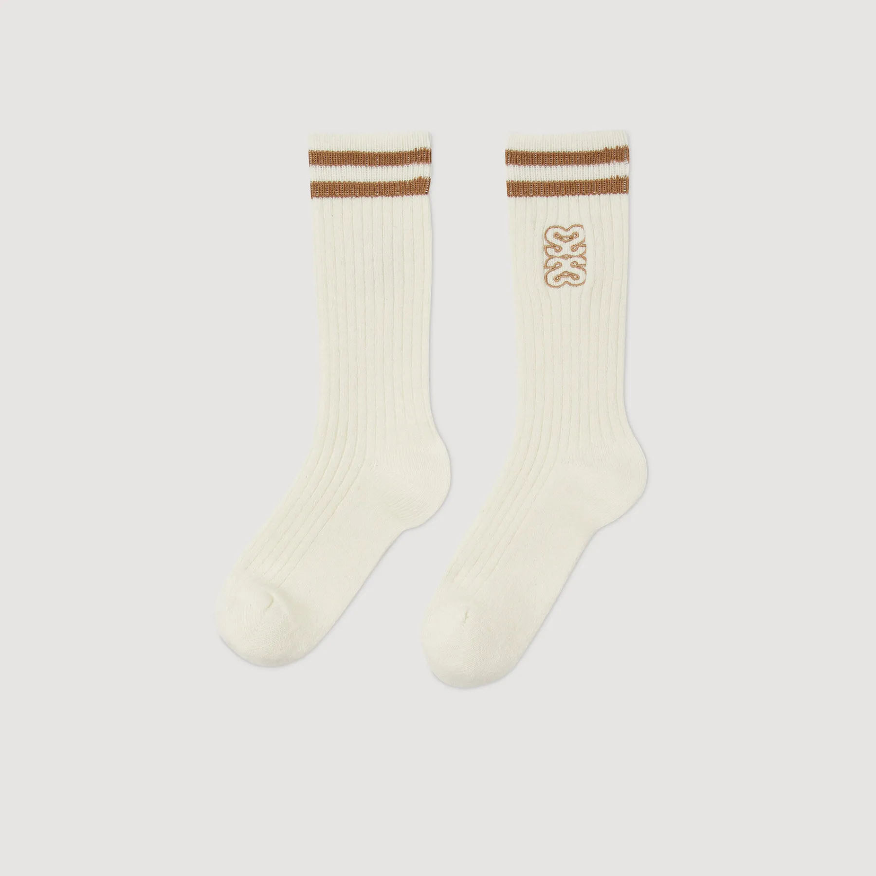 Ribbed striped socks embellished with contrasting multi-S embroidery on the ankle.