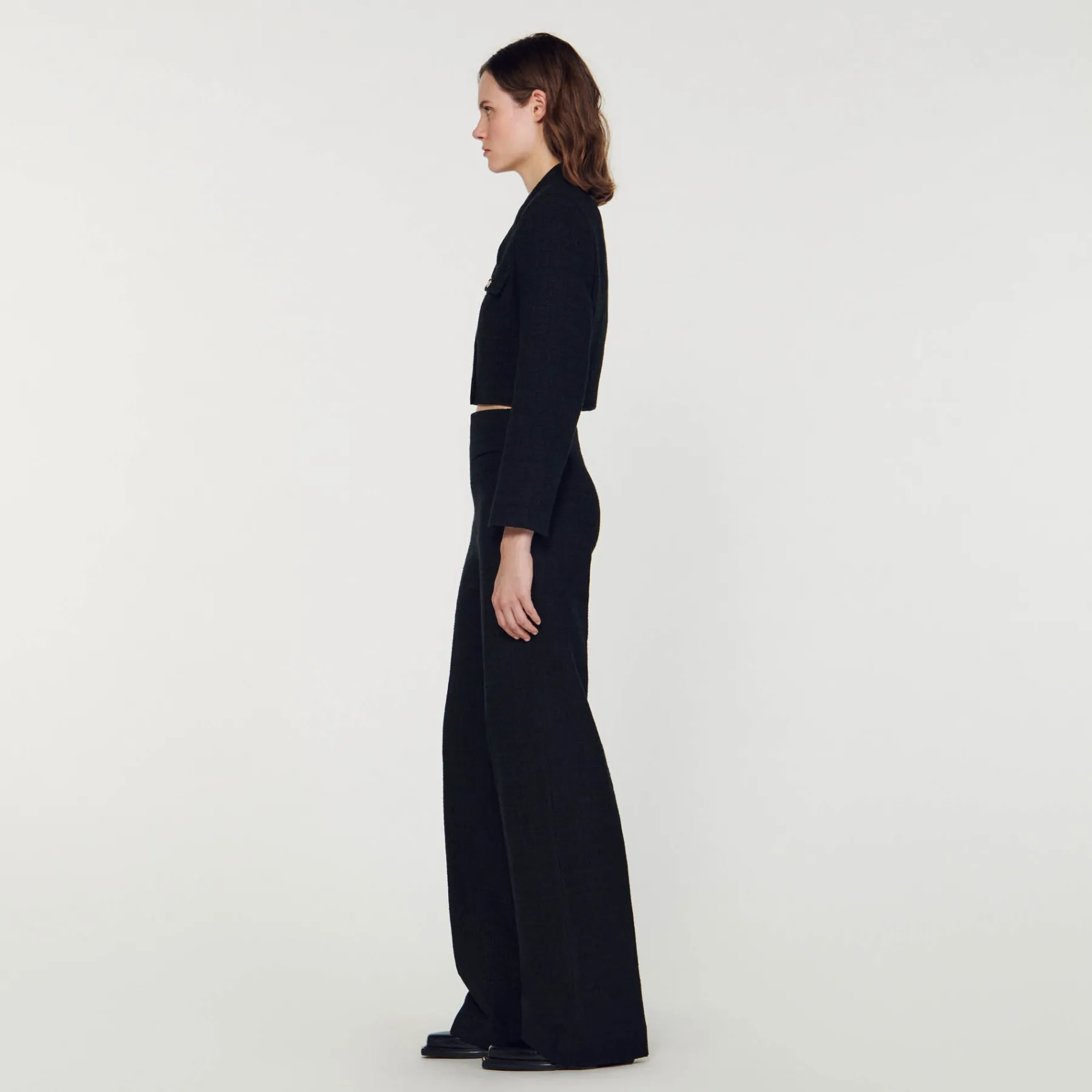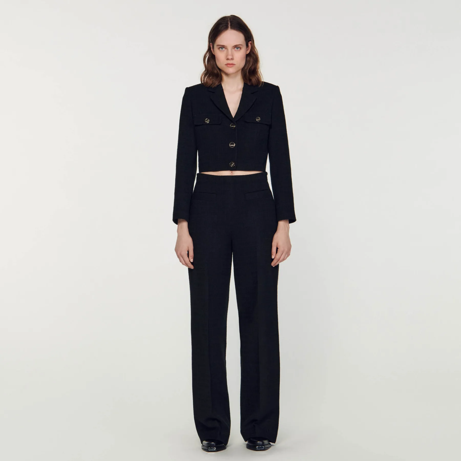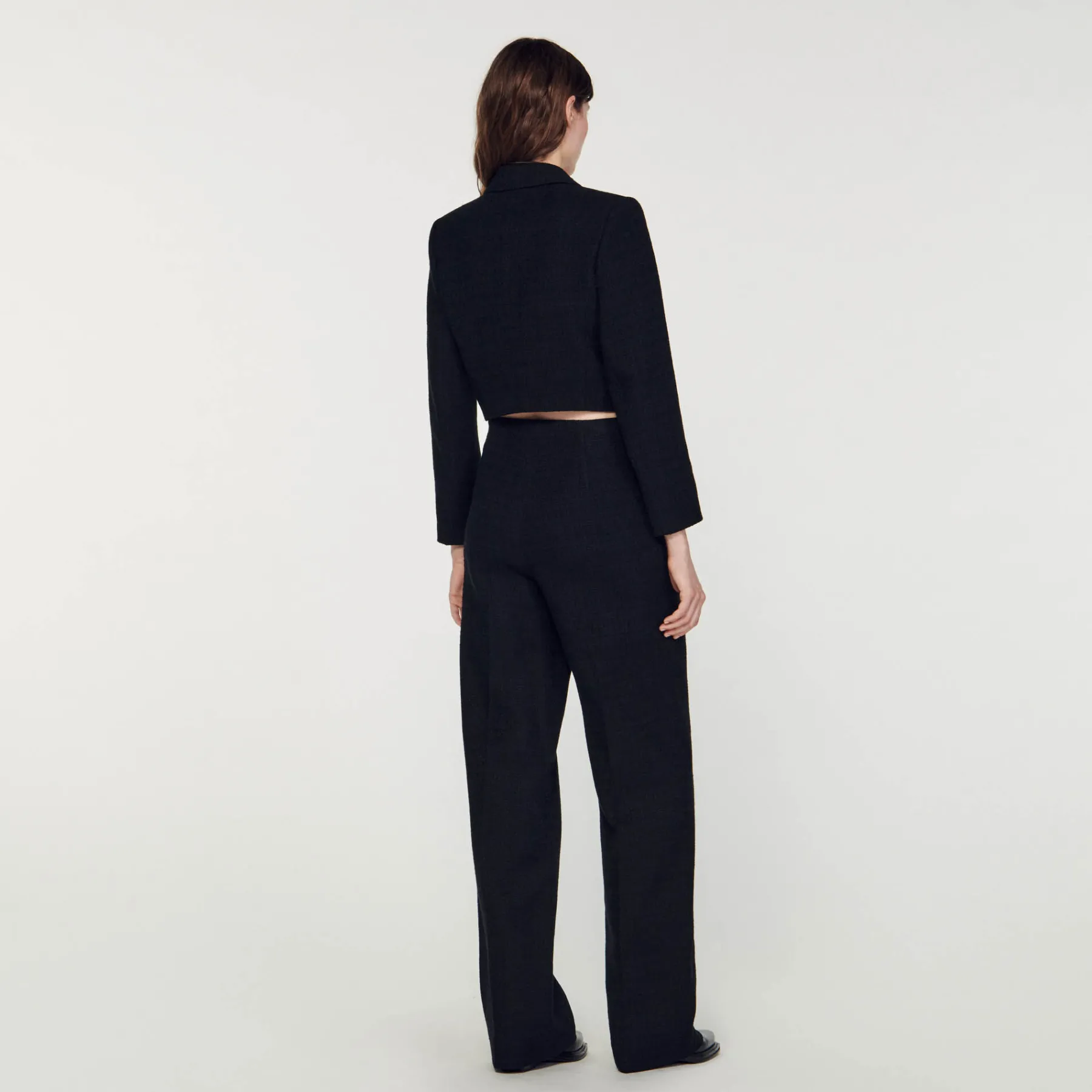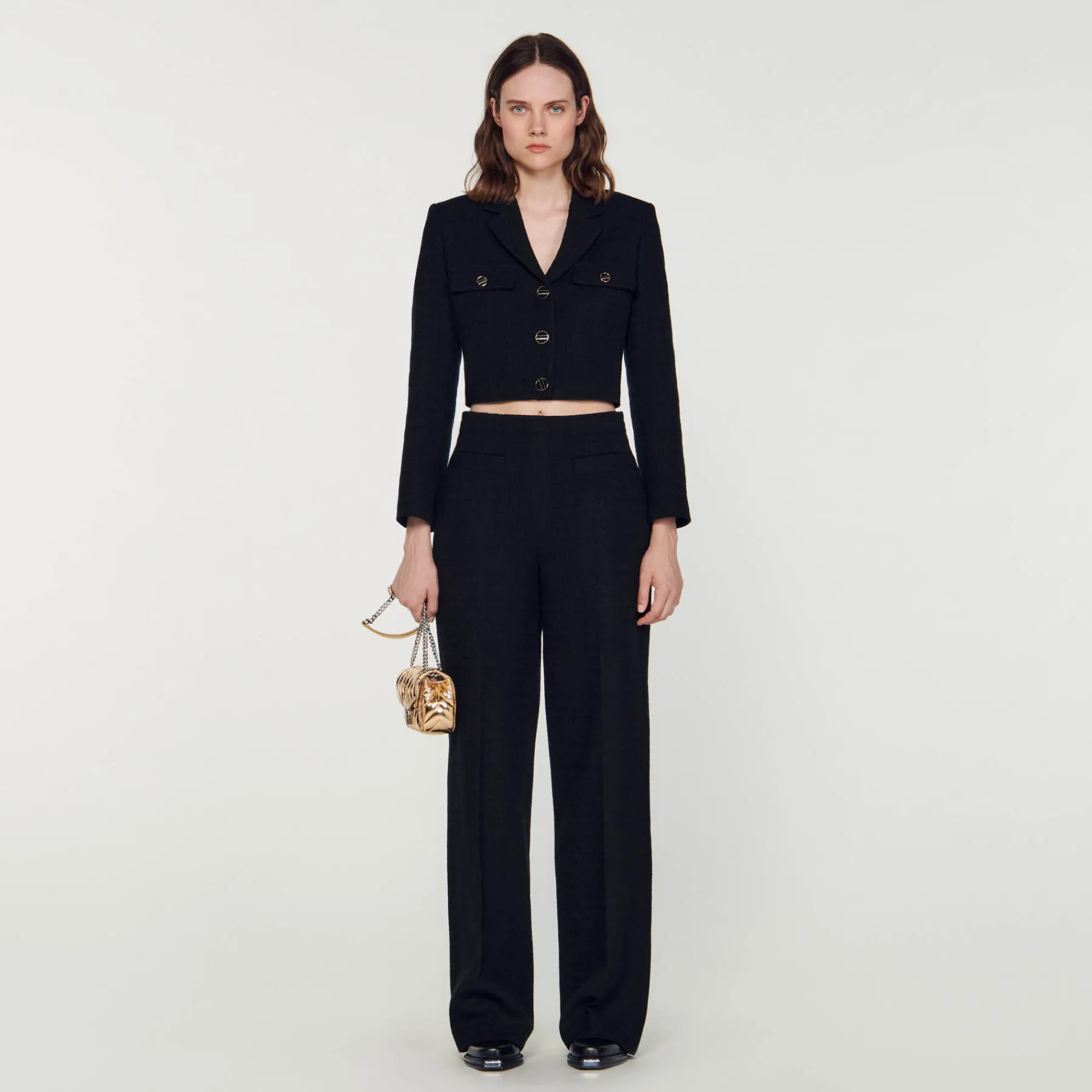 Cropped tweed jacket with a tailore+P34d collar, long sleeves and a textured-button fastening.