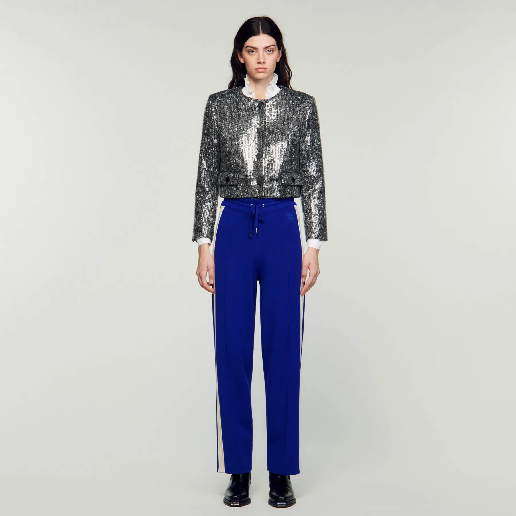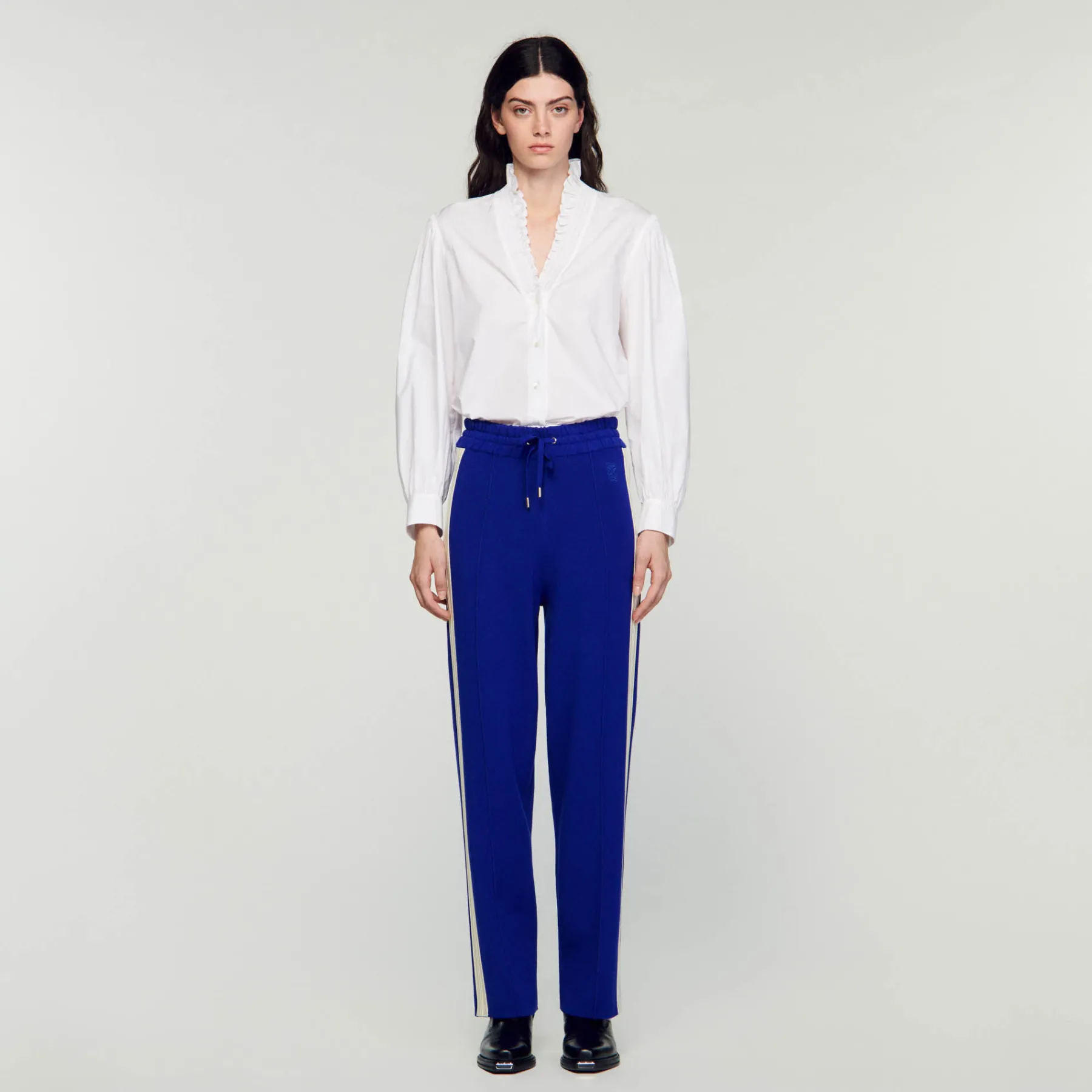 Straight-fit knit jogging bottoms with elasticated waistband and drawstring, embellished with contrasting stripes on the sides and Multi S embroidery on the side.