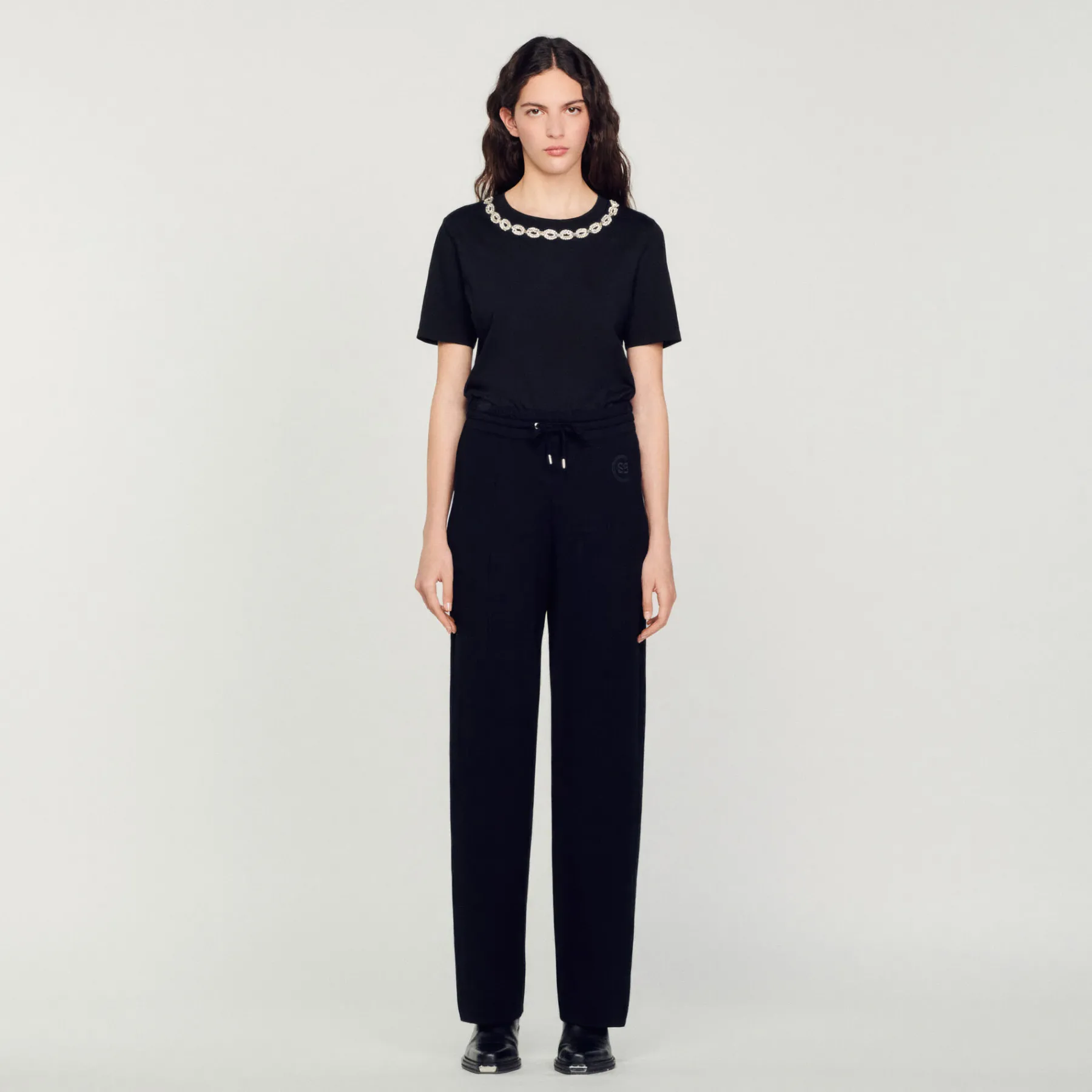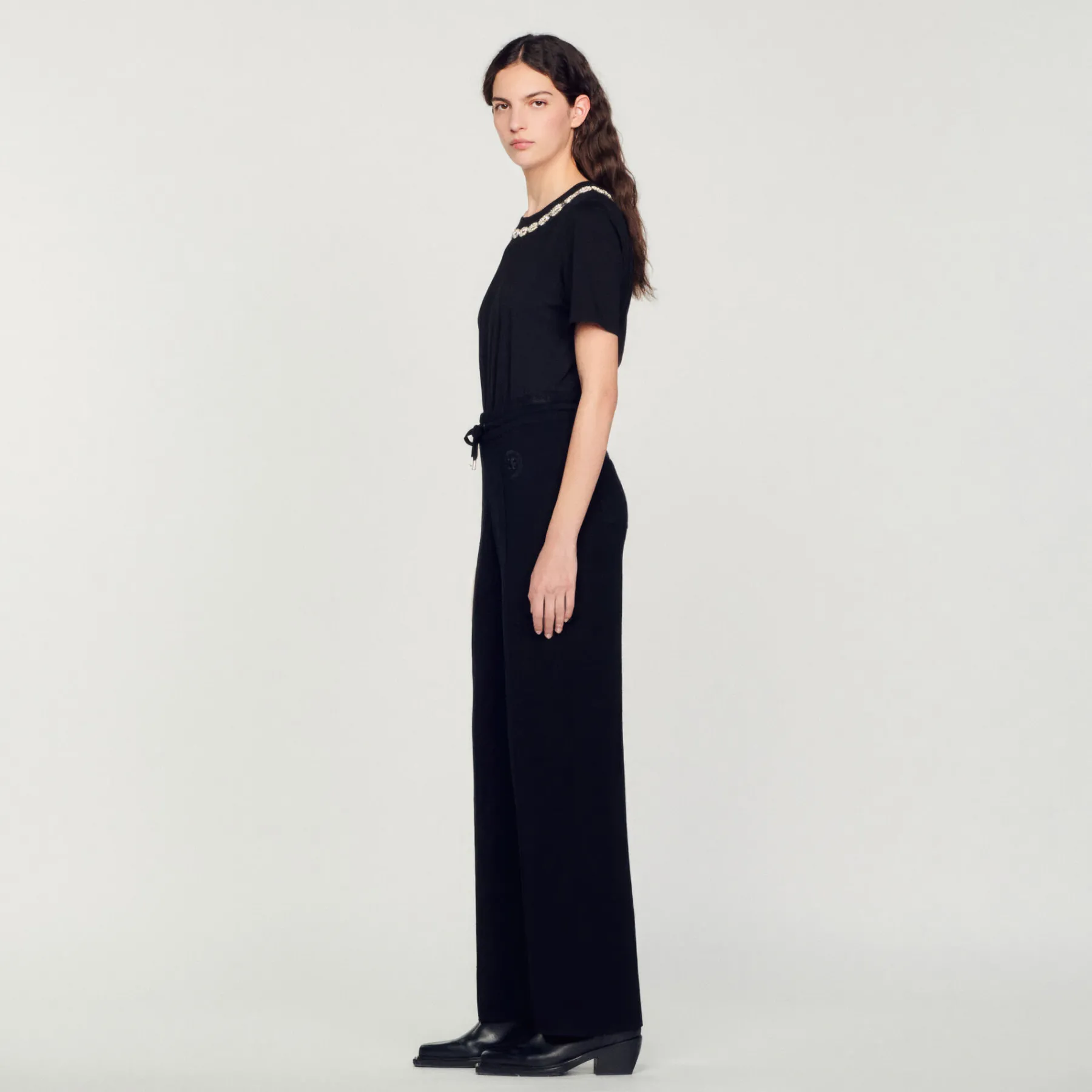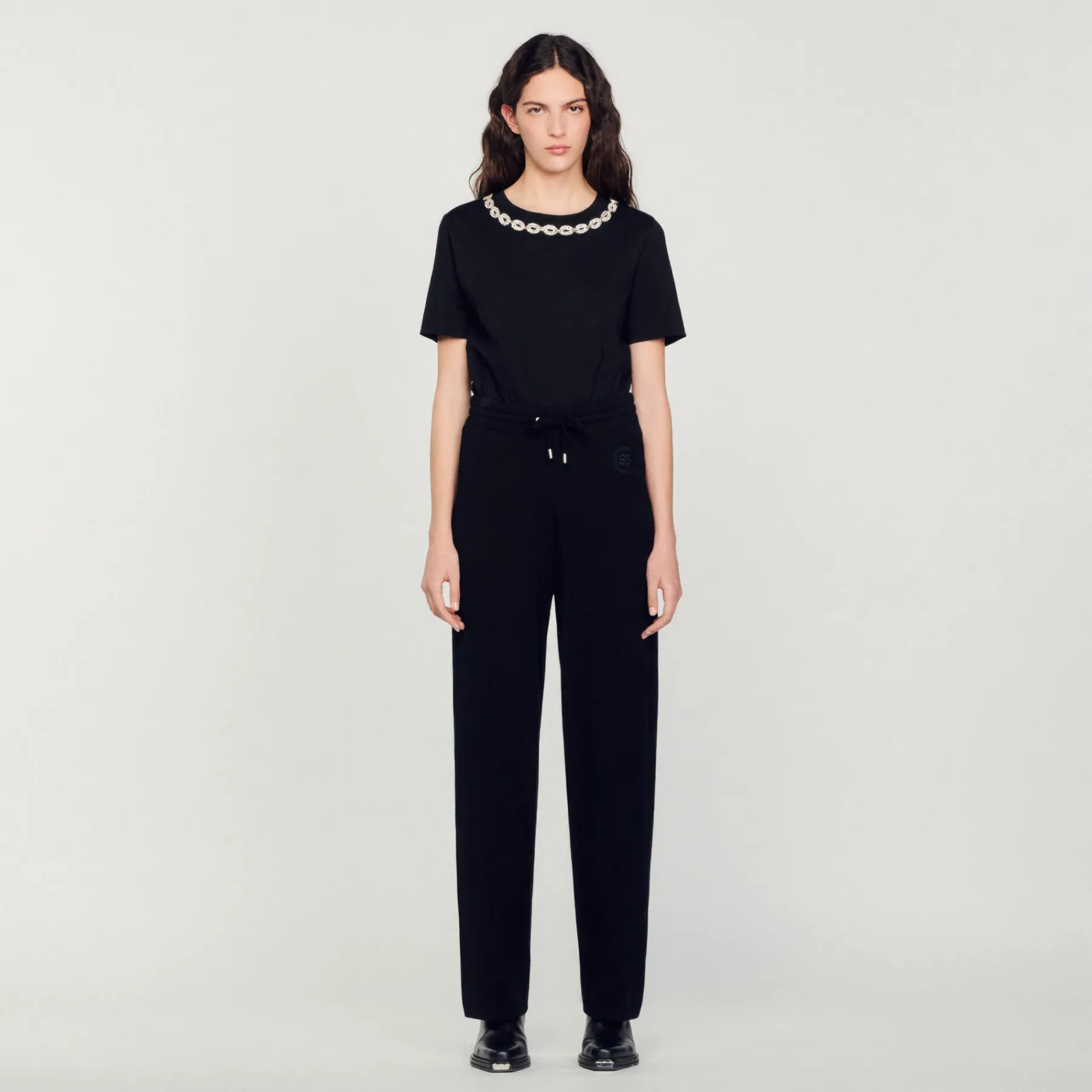 Knitted straight-leg jogging bottoms with a drawstring waist and tone-on-tone logo.