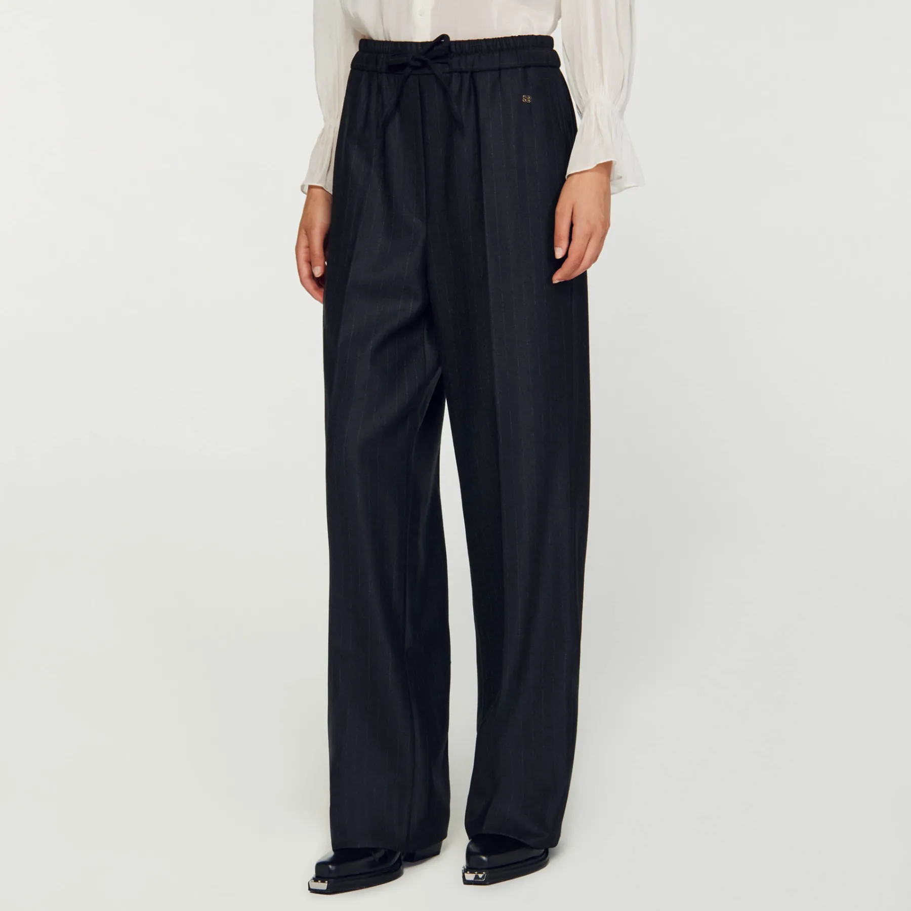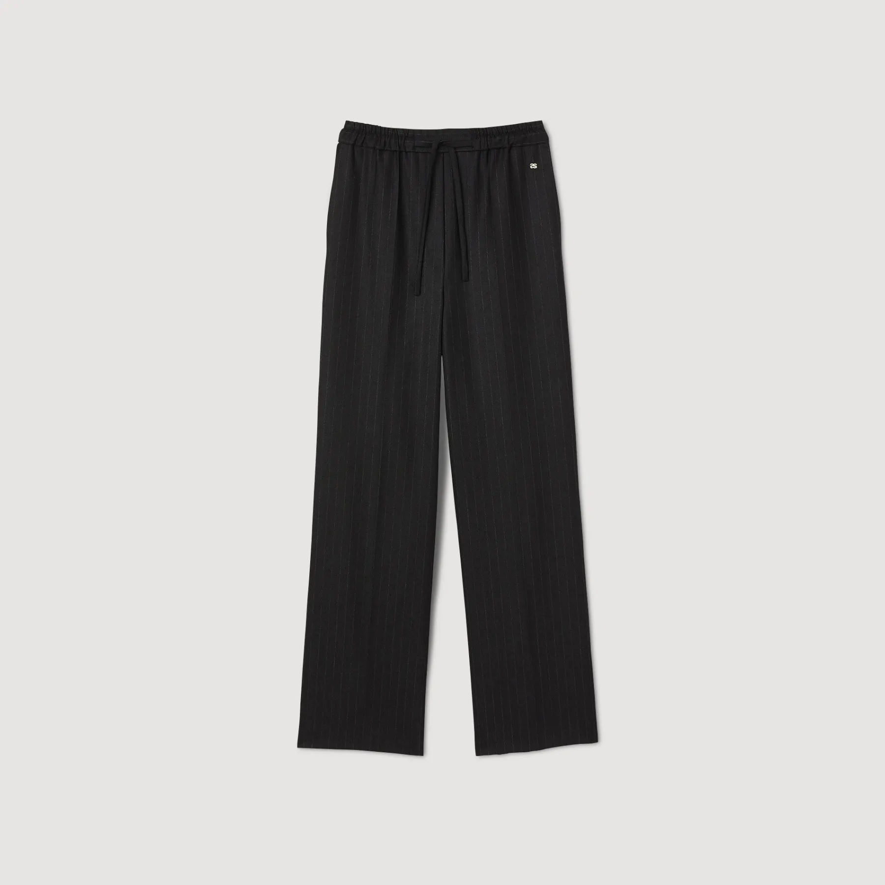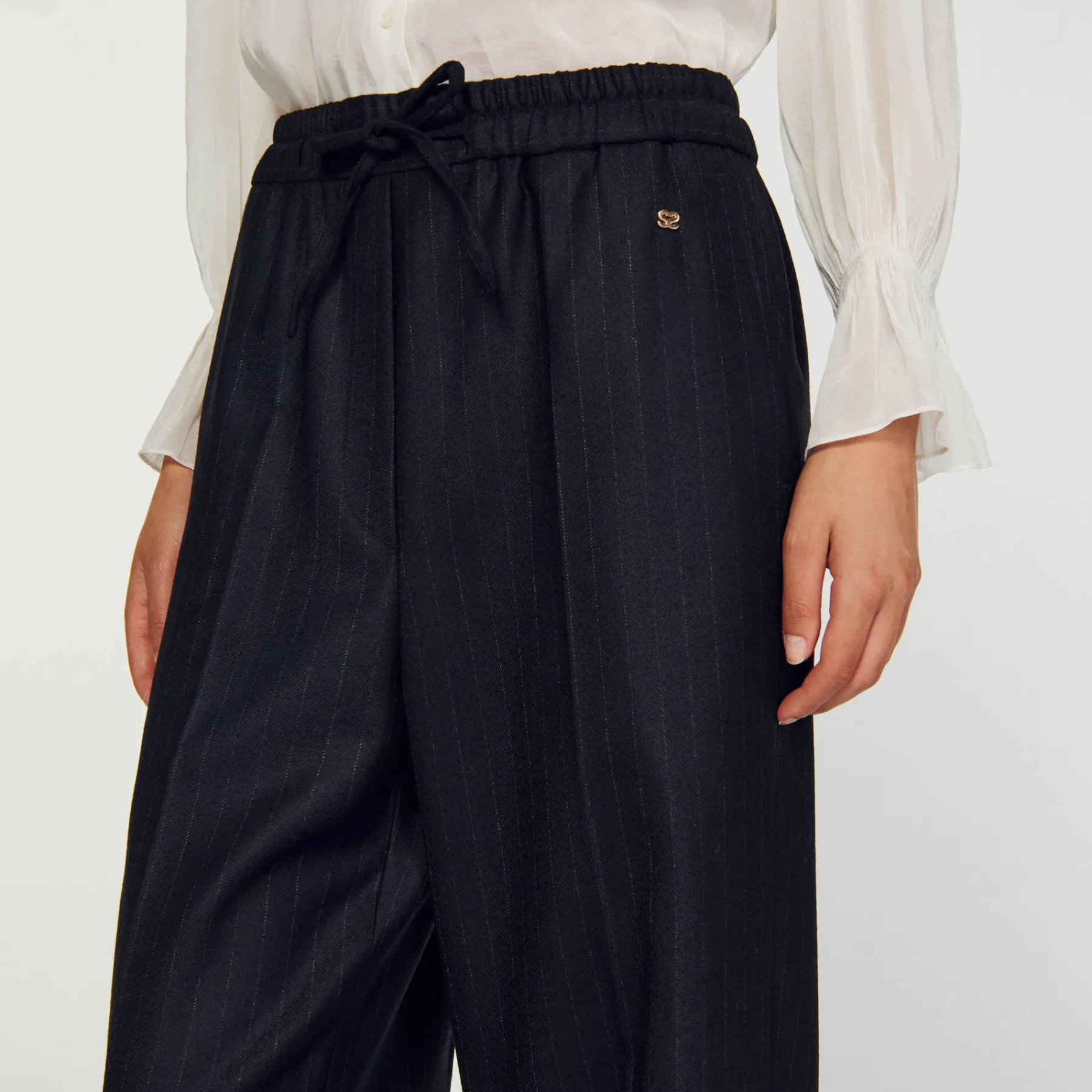 Oversized straight-leg pants with thin stripes, with elasticated waistband and drawstring and side pockets.