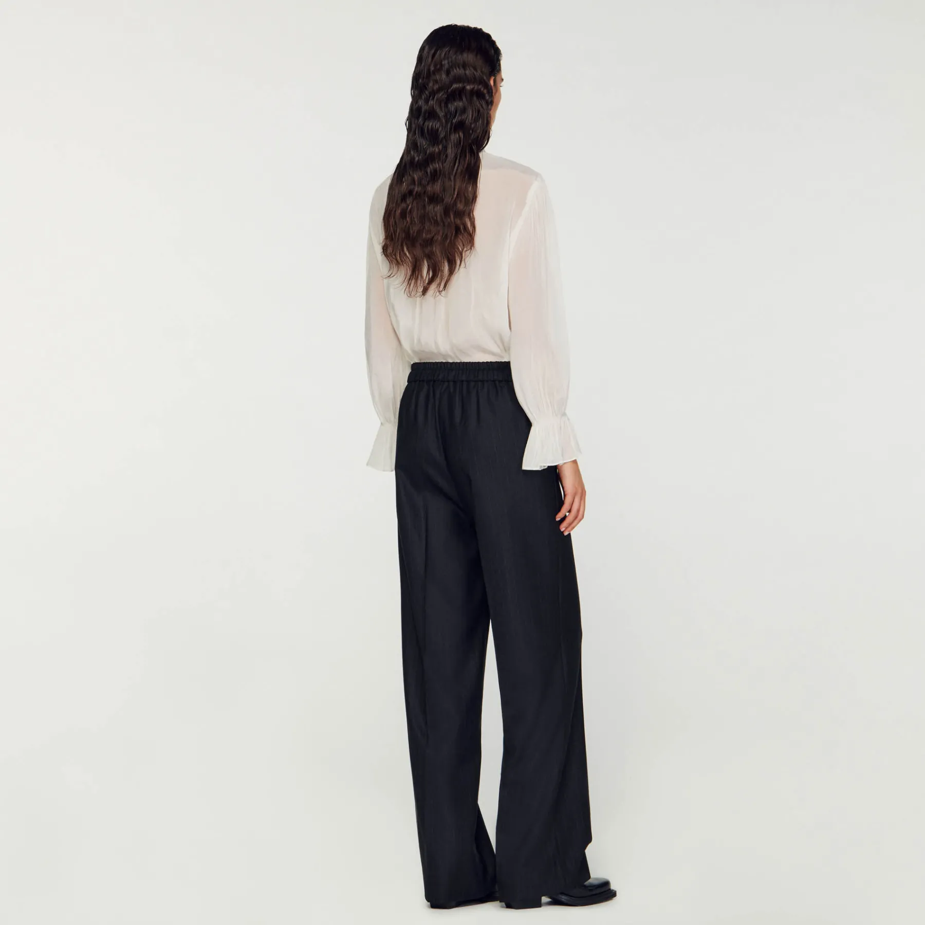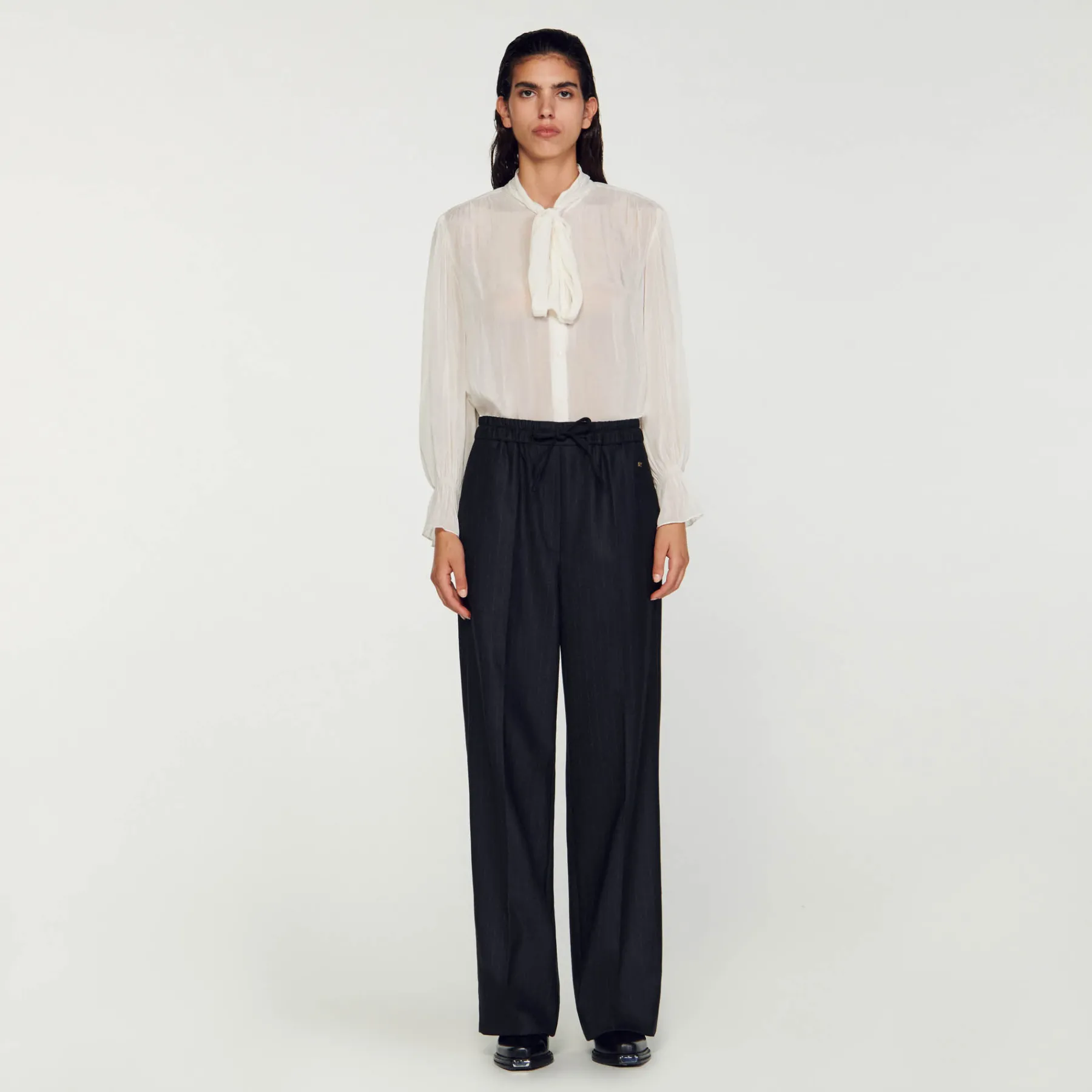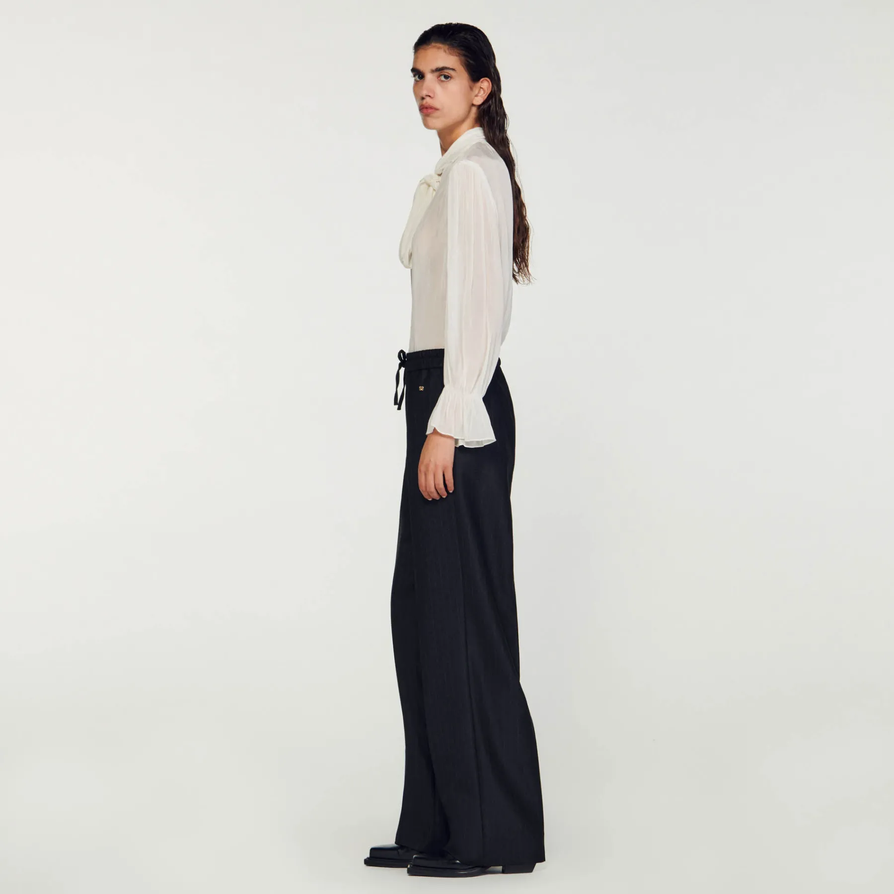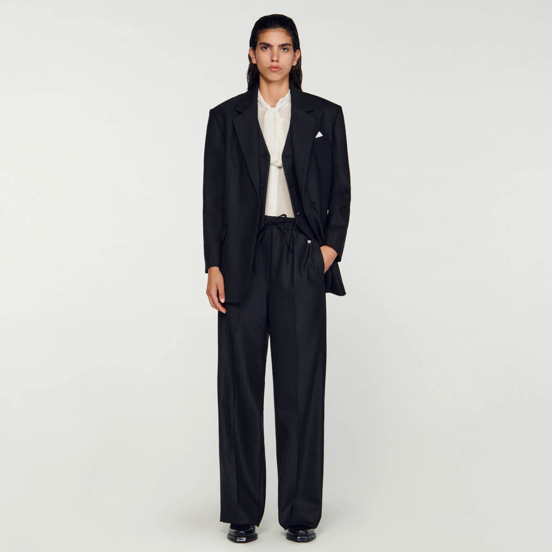 Oversized straight-leg pants with thin stripes, with elasticated waistband and drawstring and side pockets.