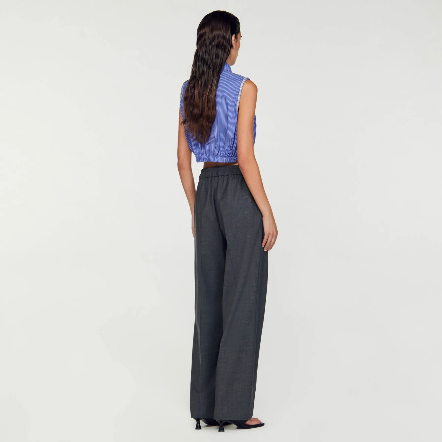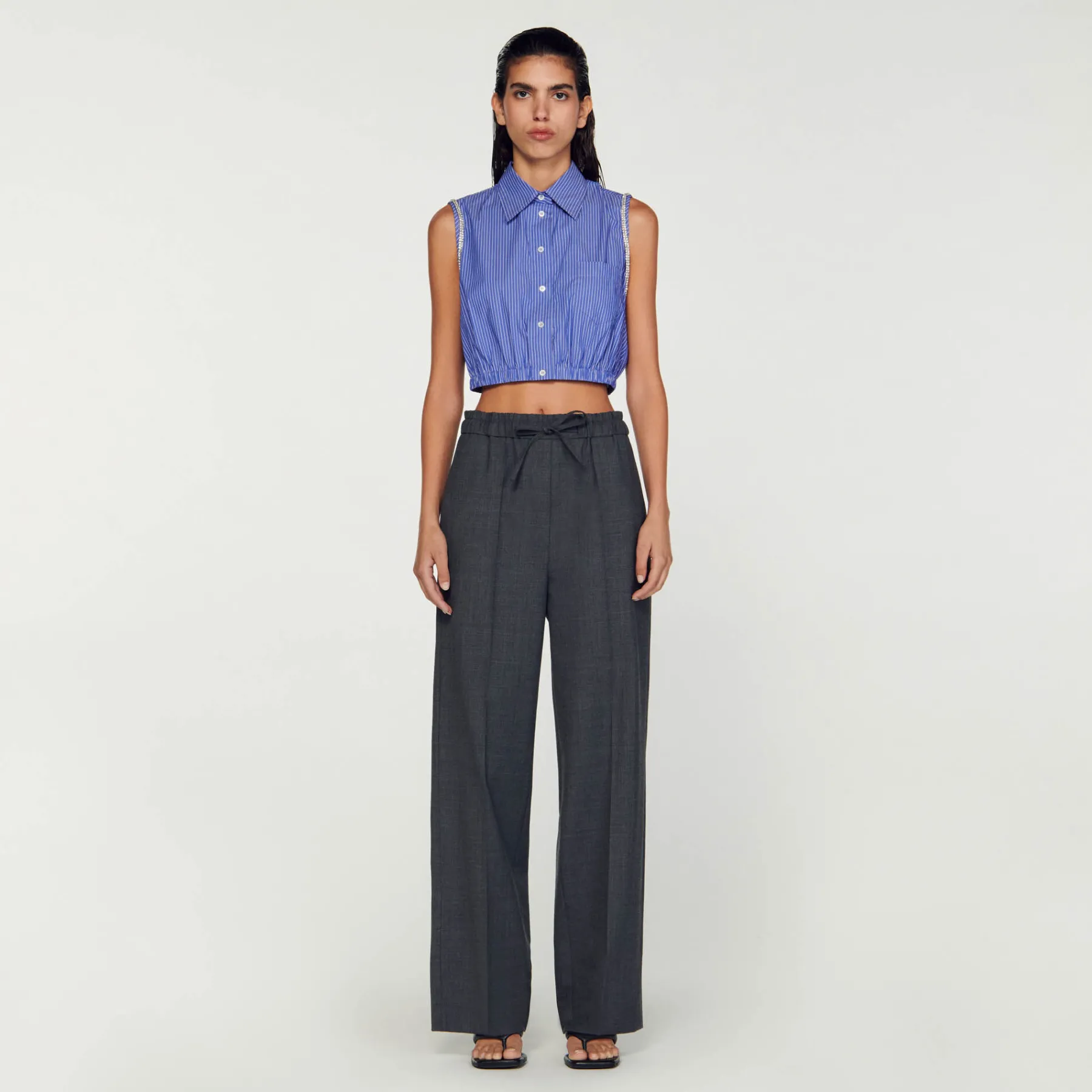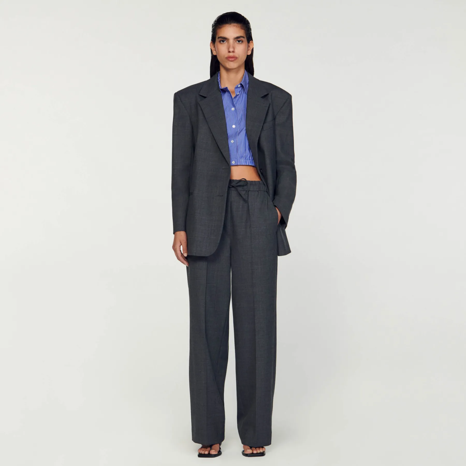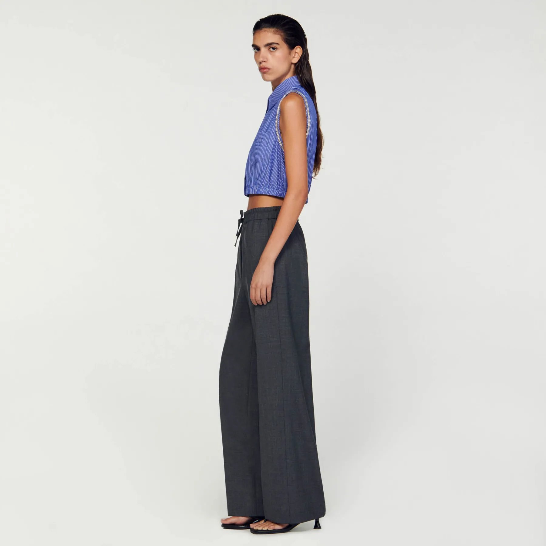 DescriptionWide-leg pants with ironed creases and an elasticated drawstring waistband.Sandro Women’s pants Oversize…