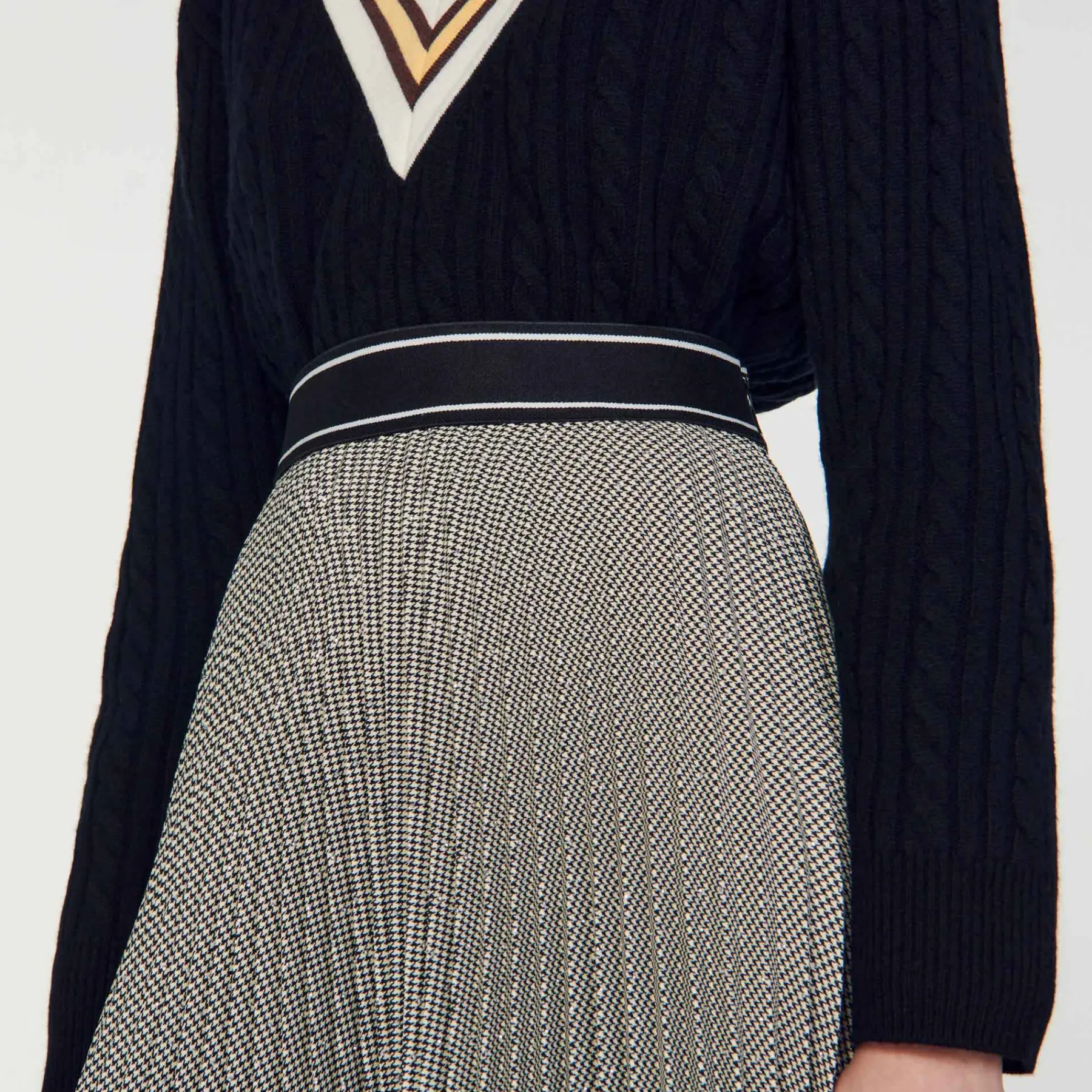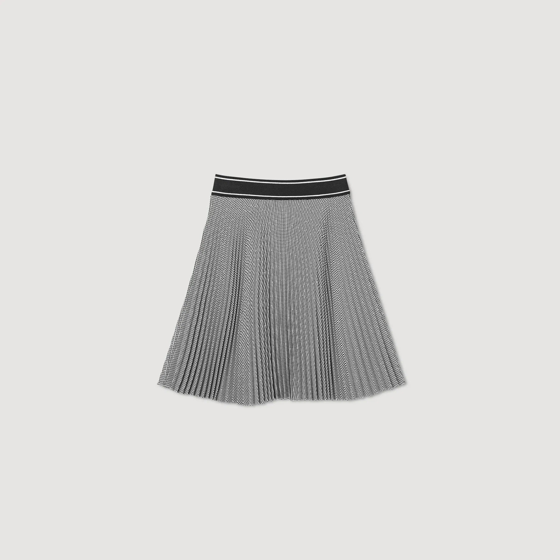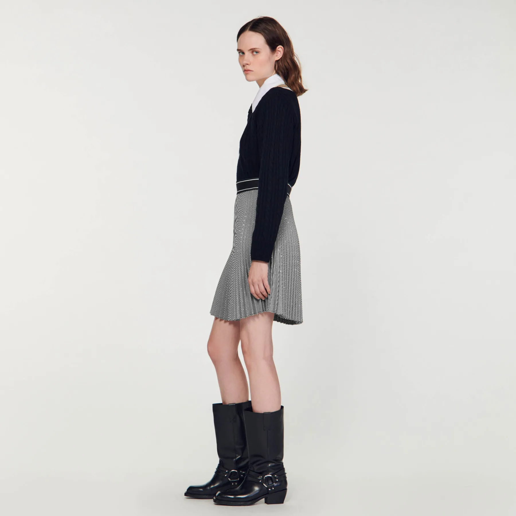 Short pleated skirt with contrasting elasticated waistband, embellished with a houndstooth pattern and crystals all over.