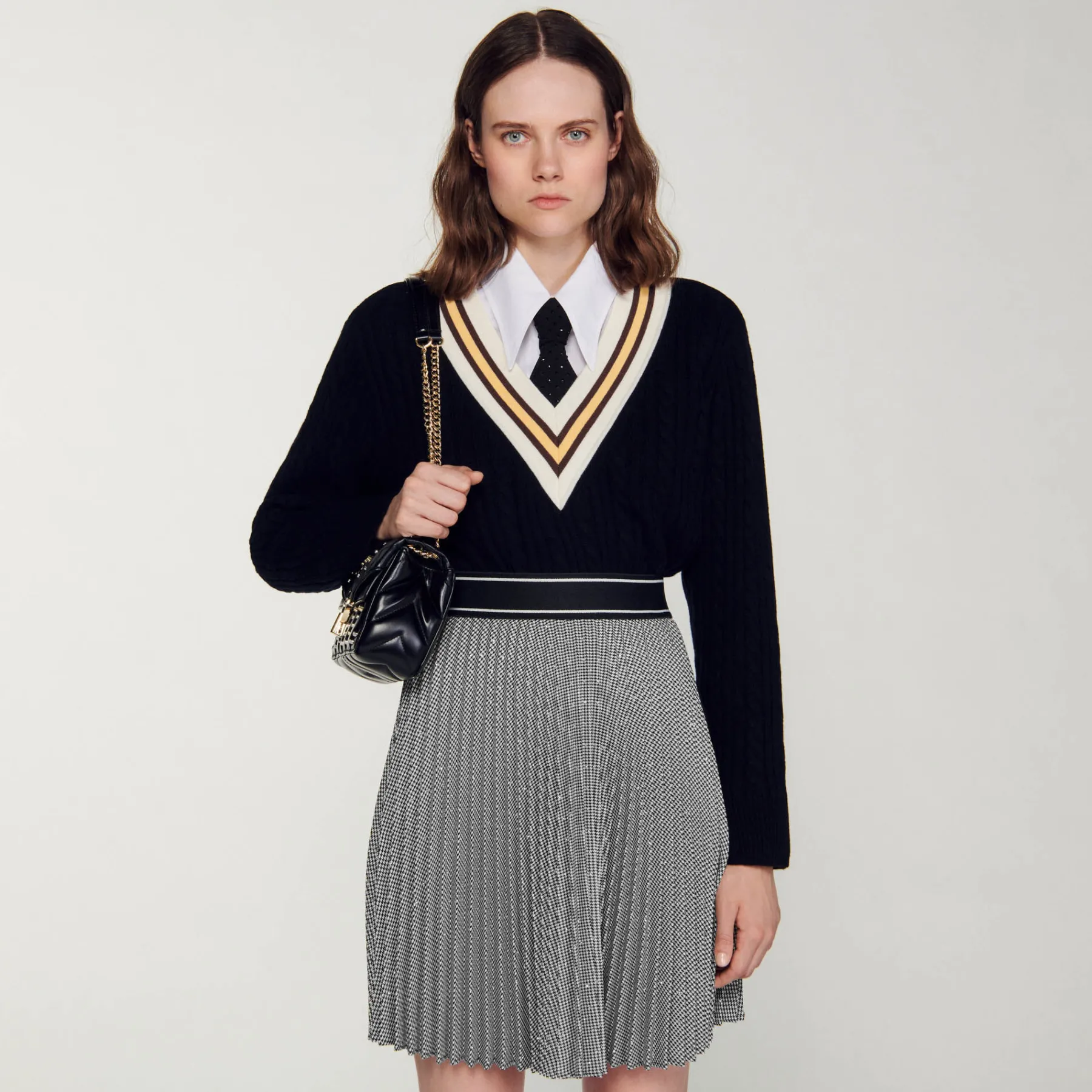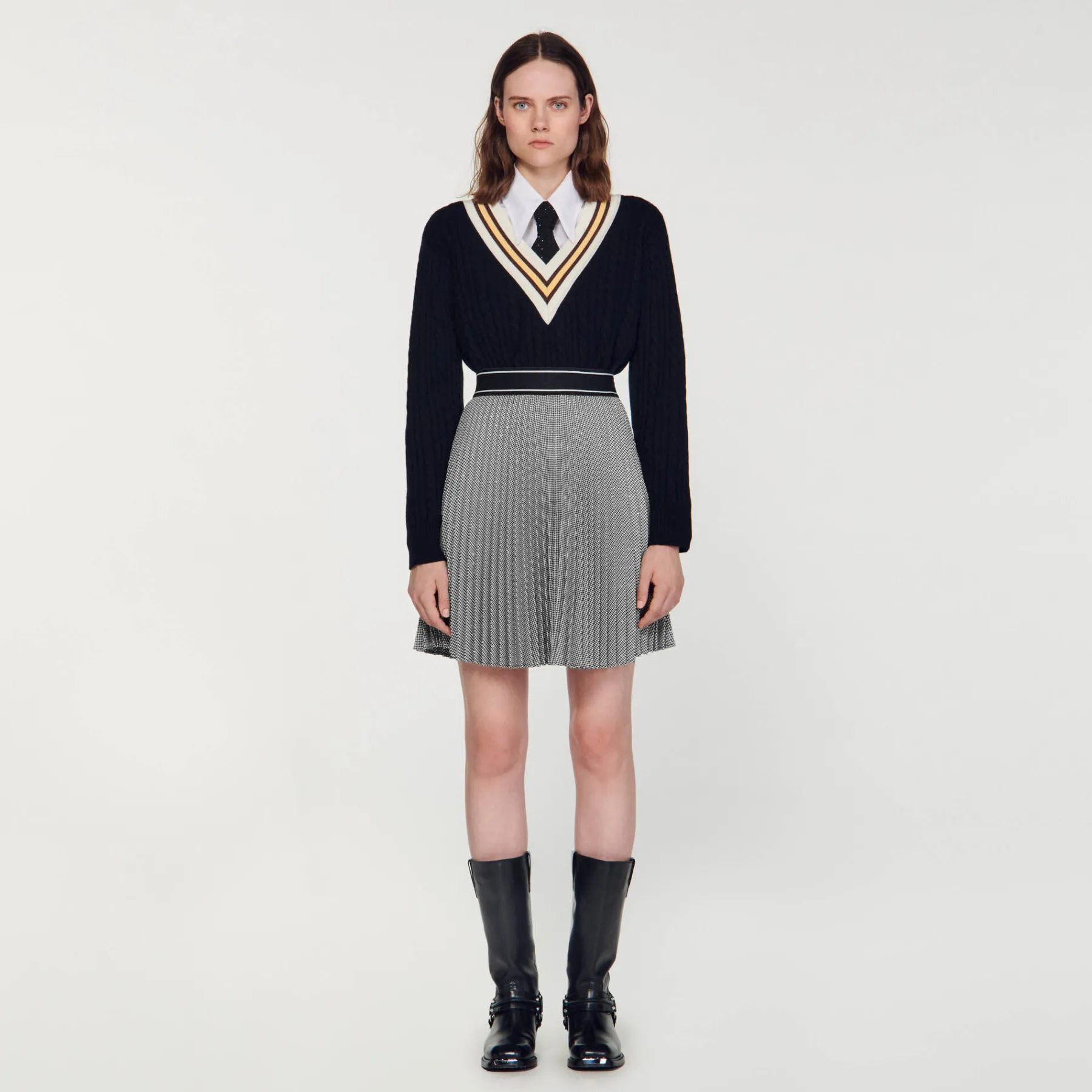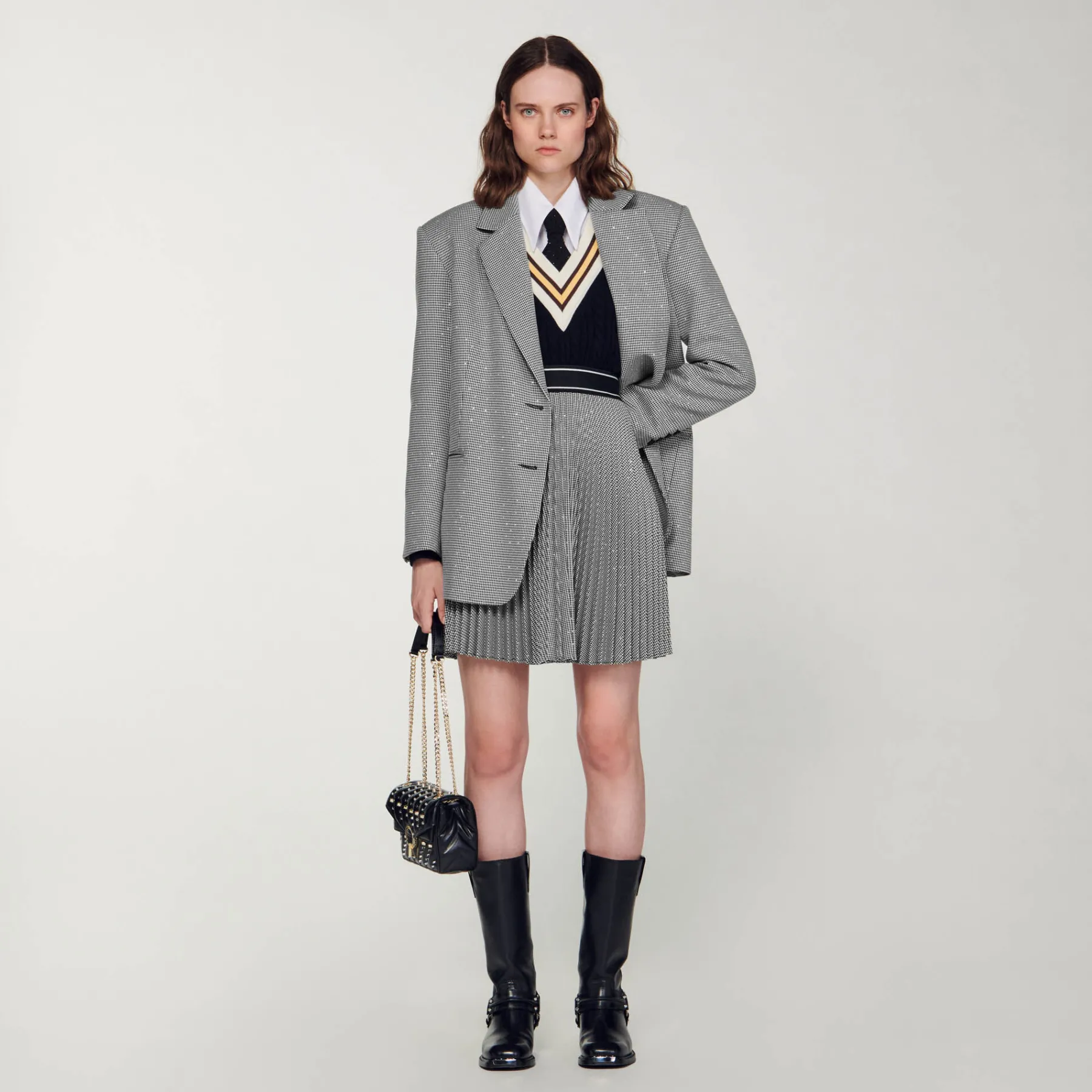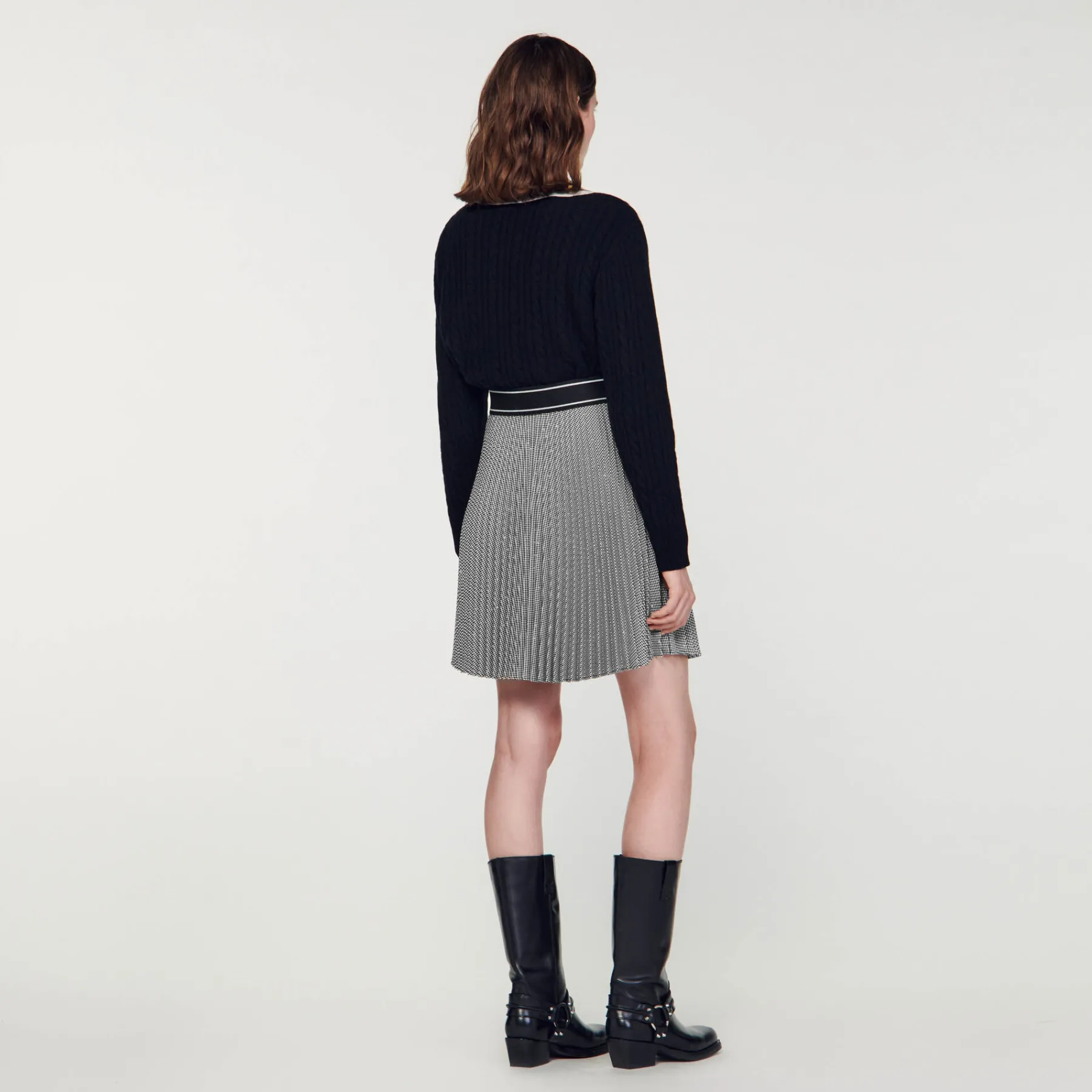 Short pleated skirt with contrasting elasticated waistband, embellished with a houndstooth pattern and crystals all over.