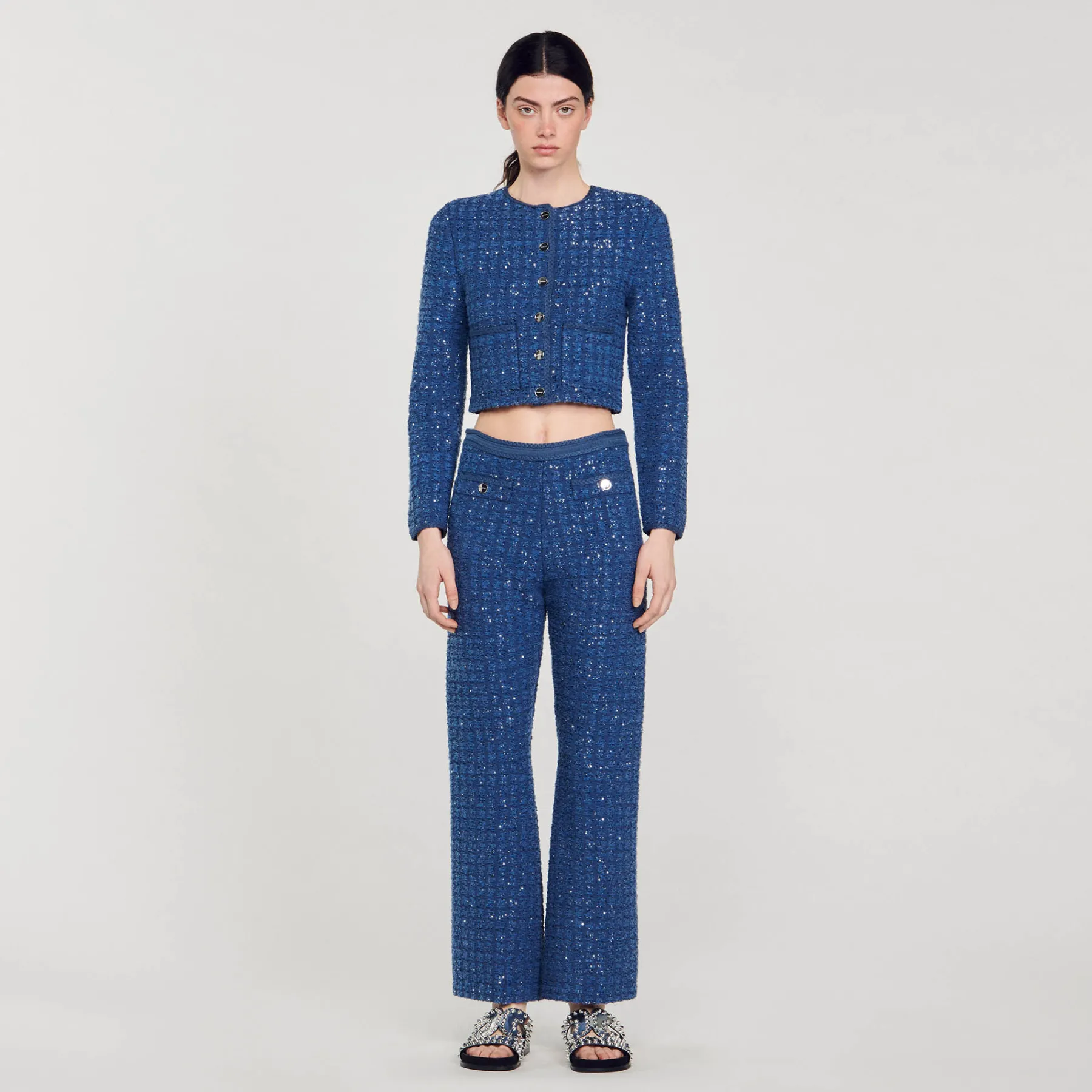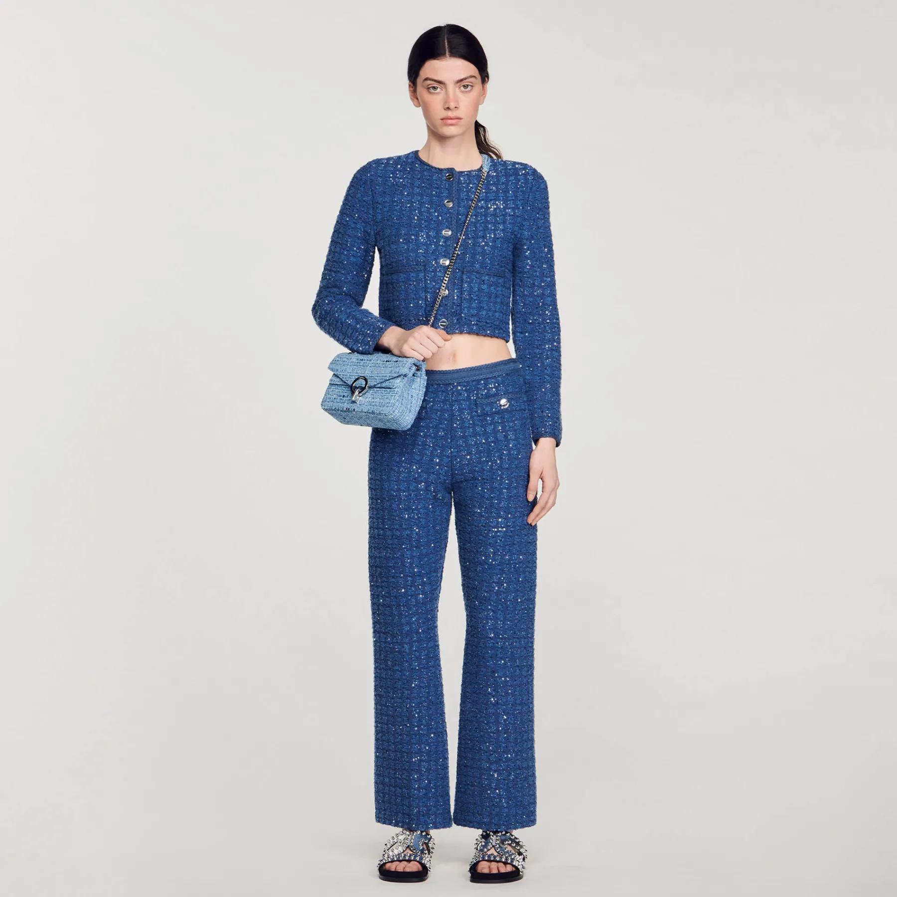- Shimmering tweed effect