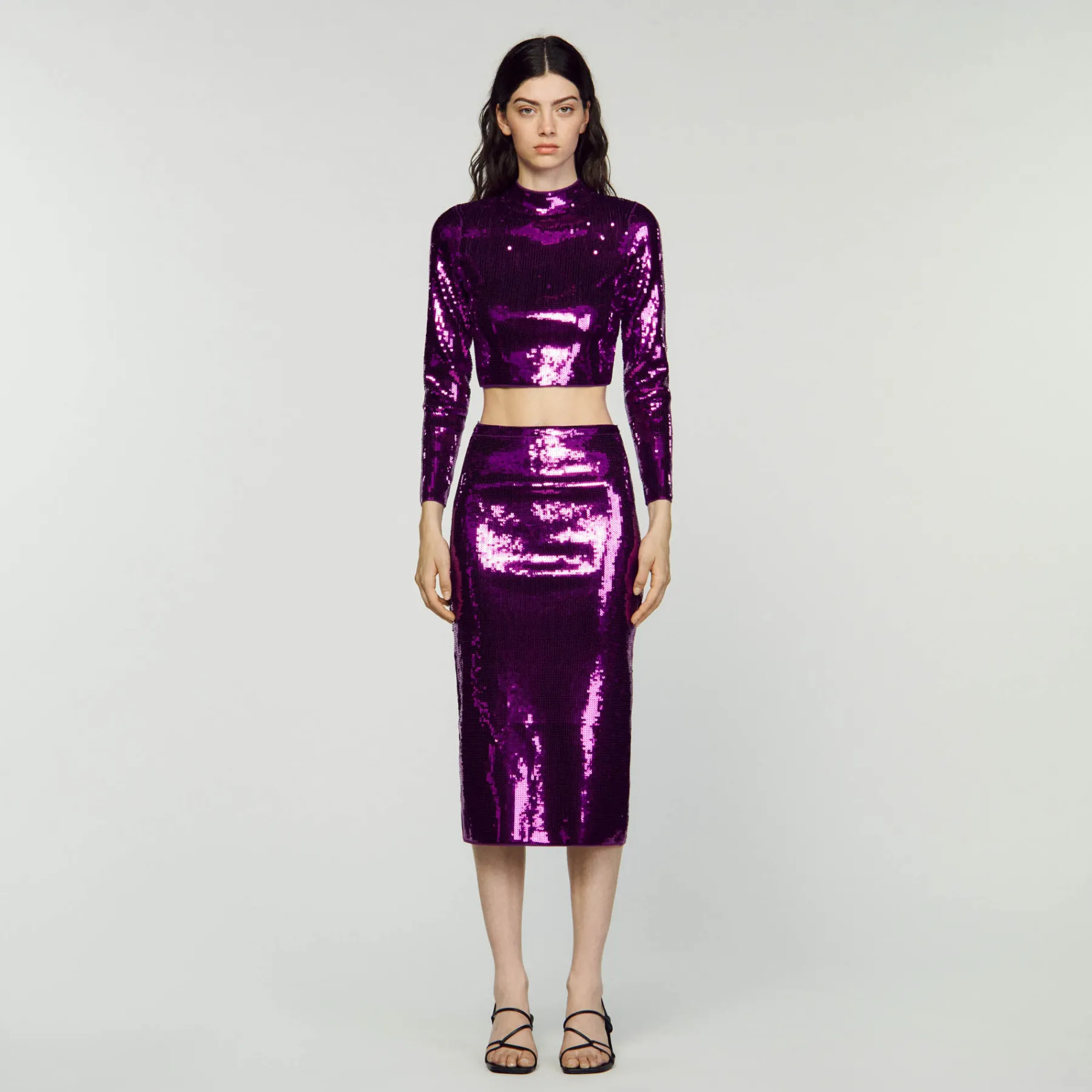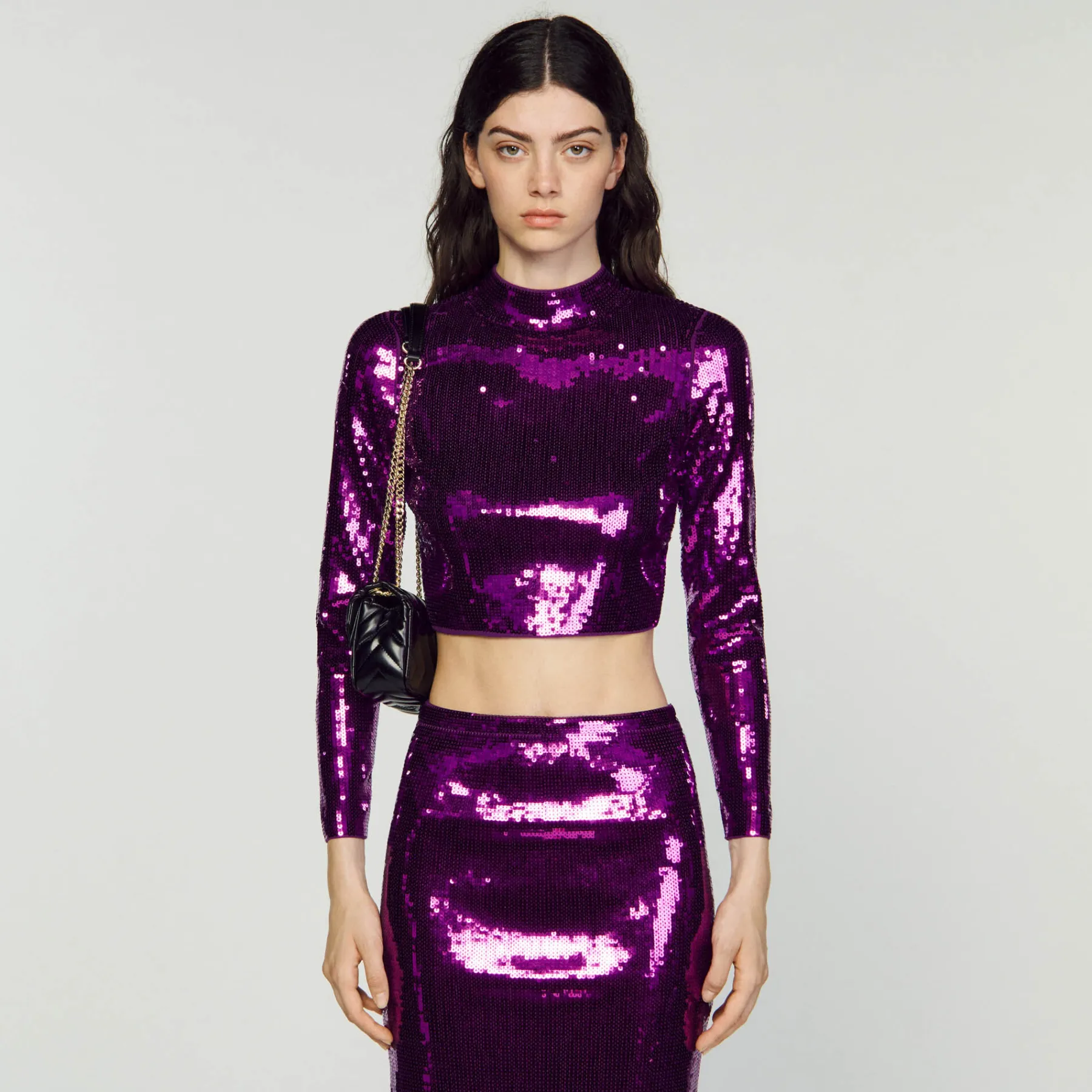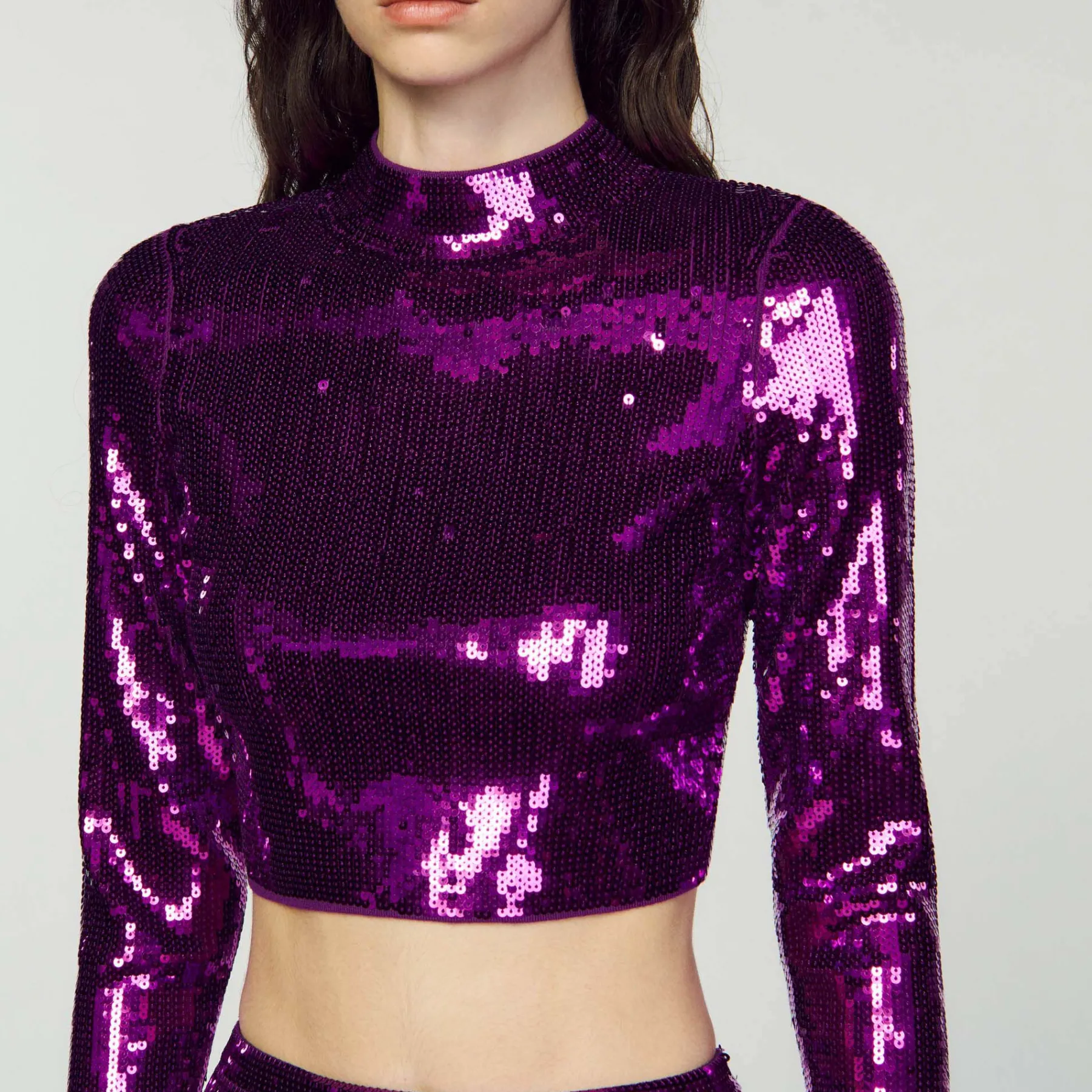 DescriptionSequin knit sweater with high neck and long sleeves.Sandro Women’s sequinned cropped knit sweater …