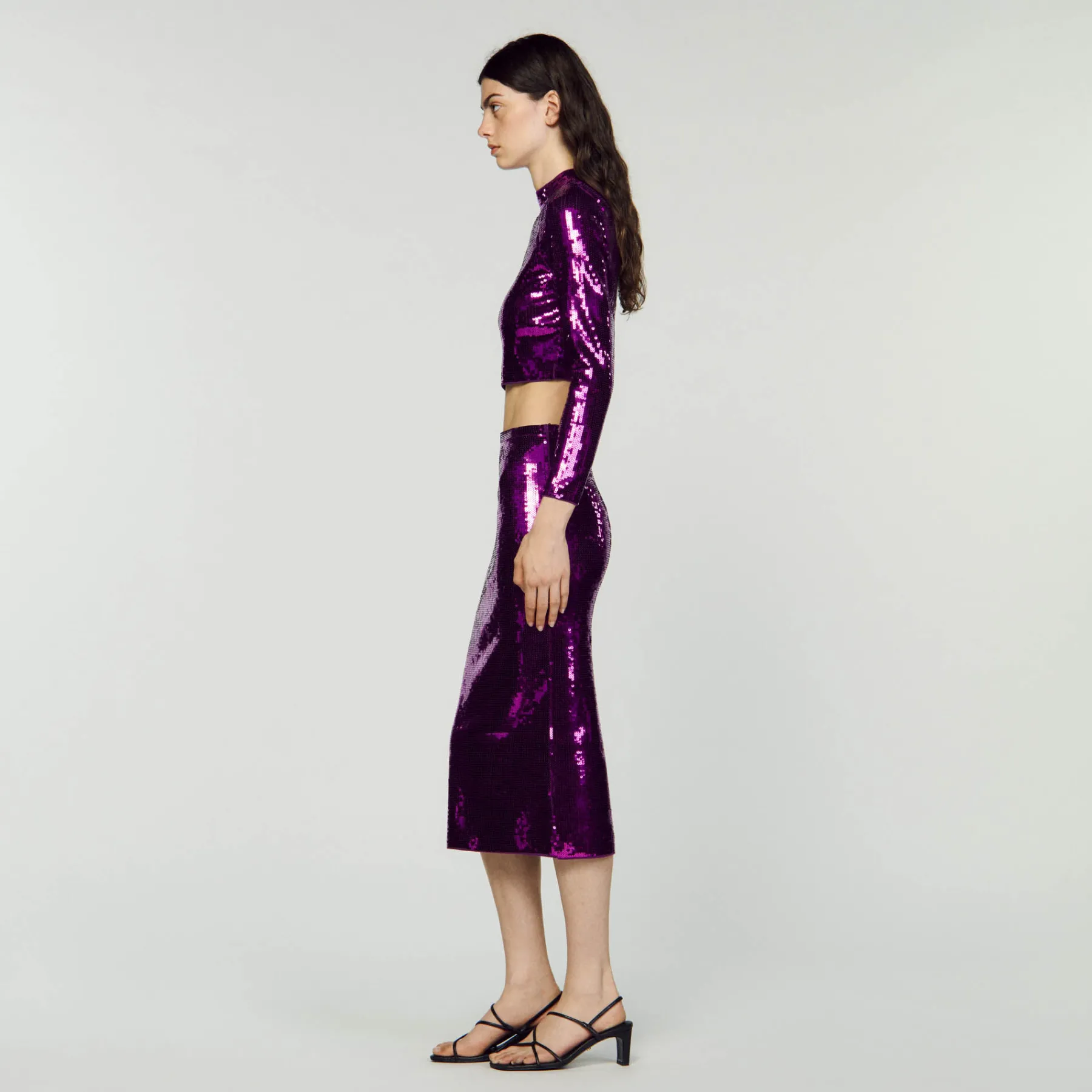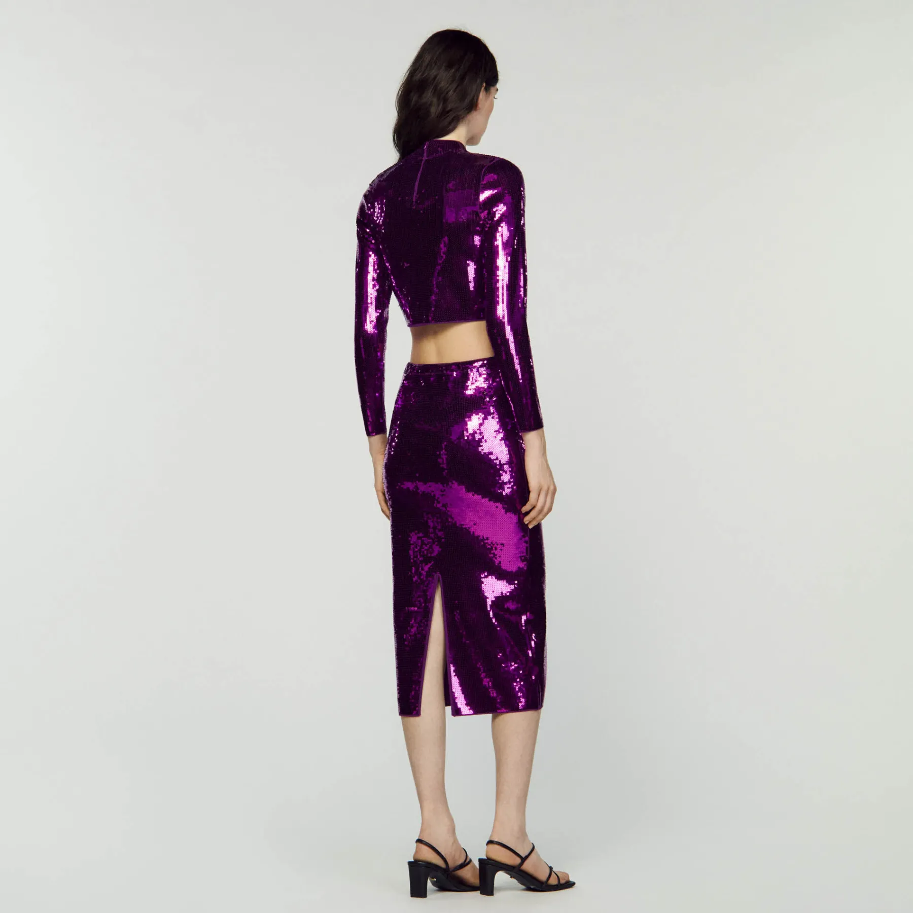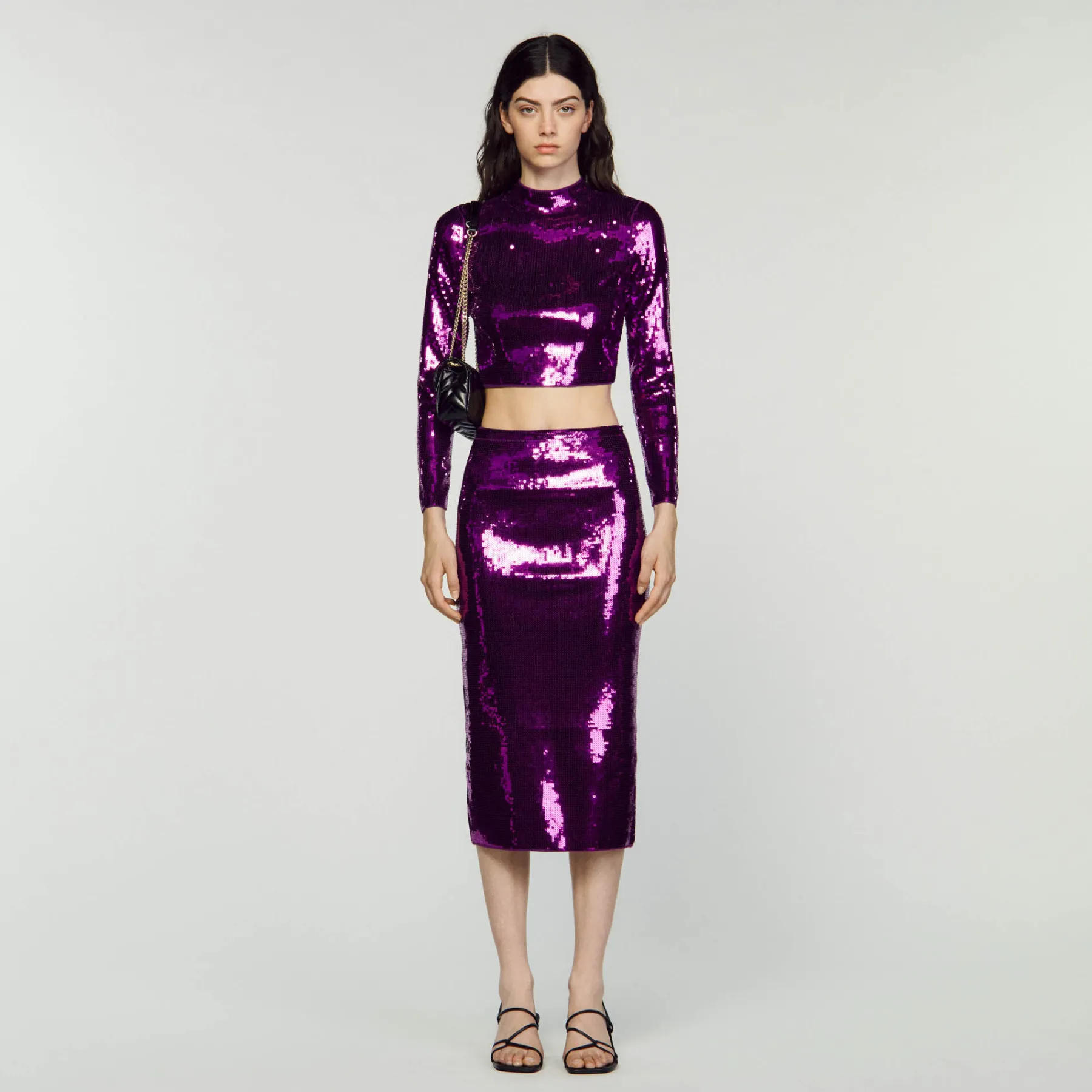 DescriptionSequin knit sweater with high neck and long sleeves.Sandro Women’s sequinned cropped knit sweater …