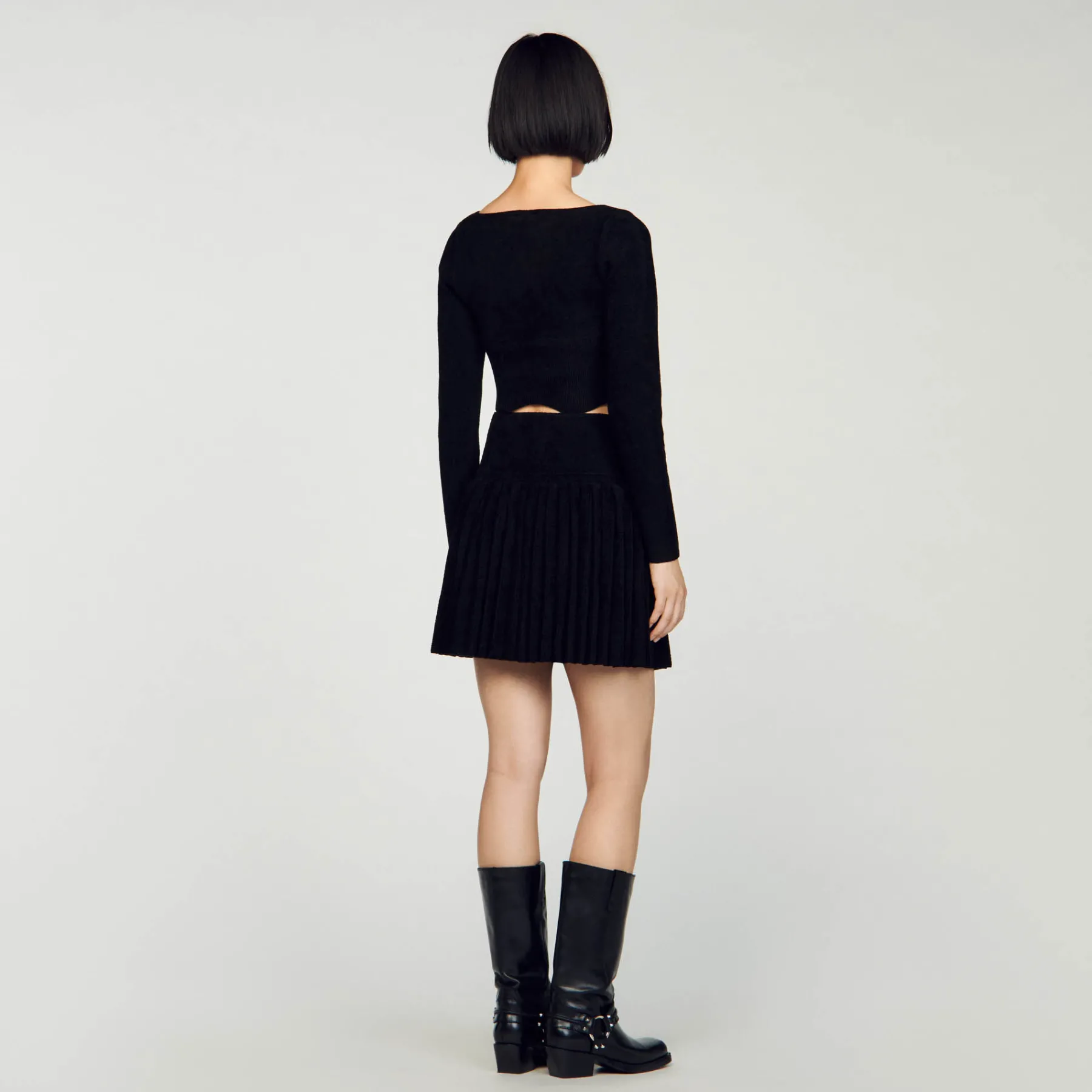 - Sandro Women’s velvet-effect knit cropped sweater