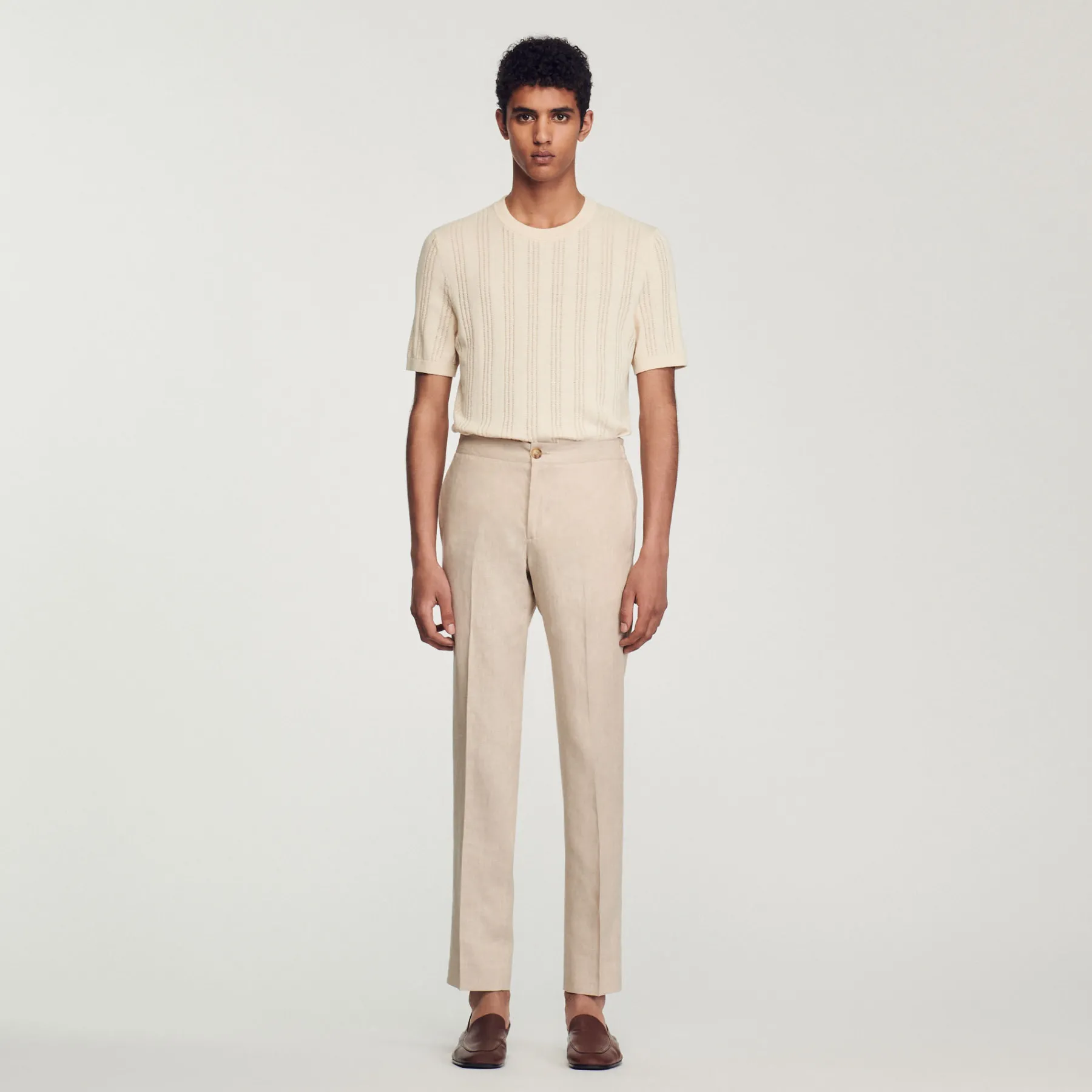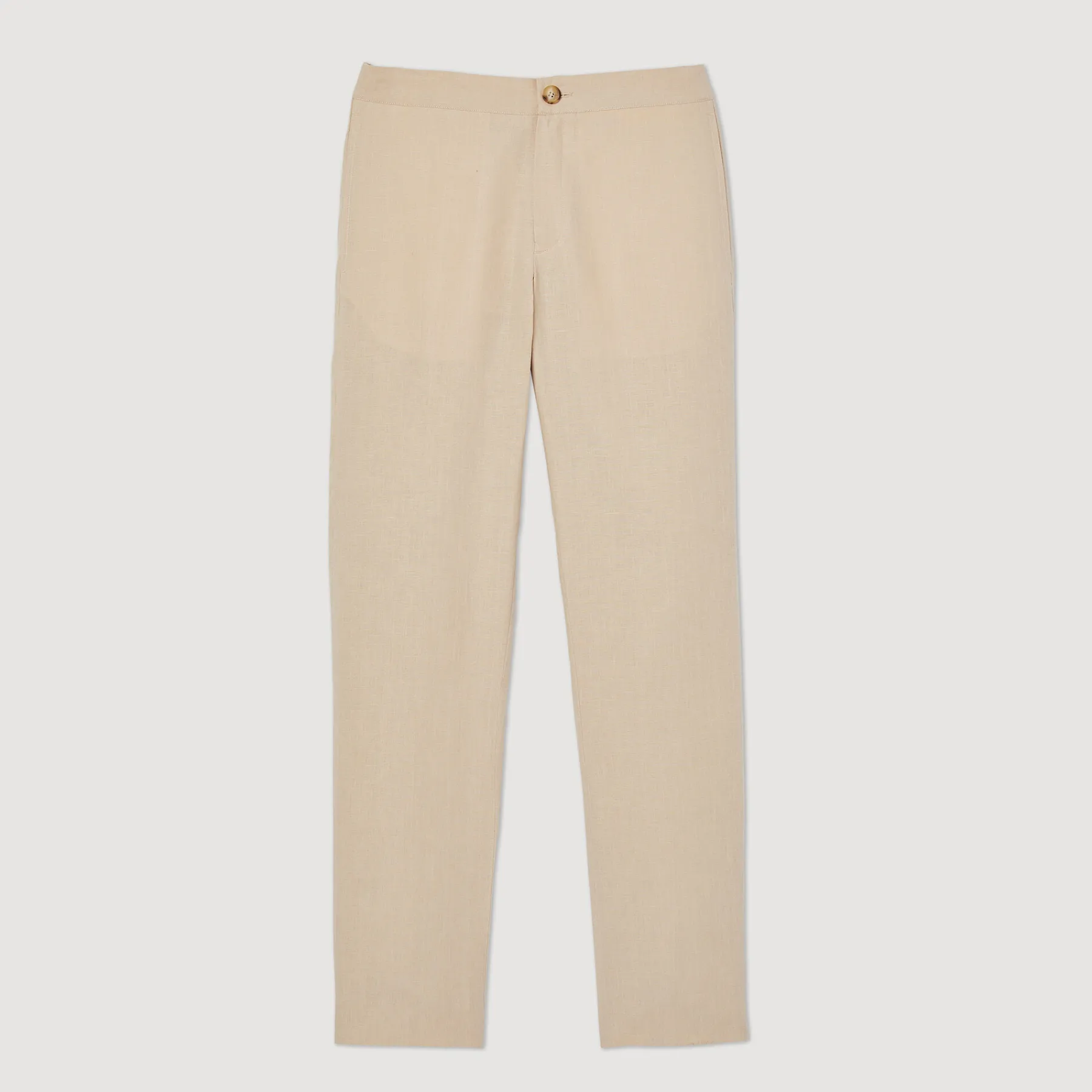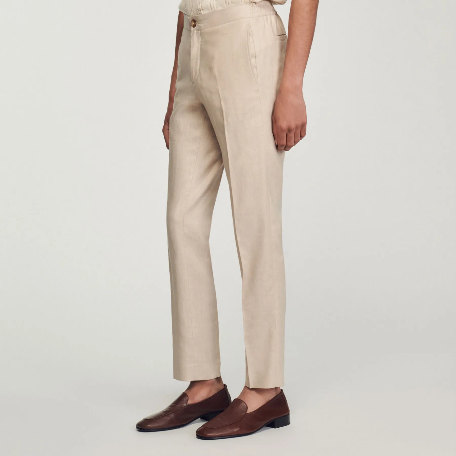 Straight-cut linen pants with an elasticated waist at the back and side pockets.