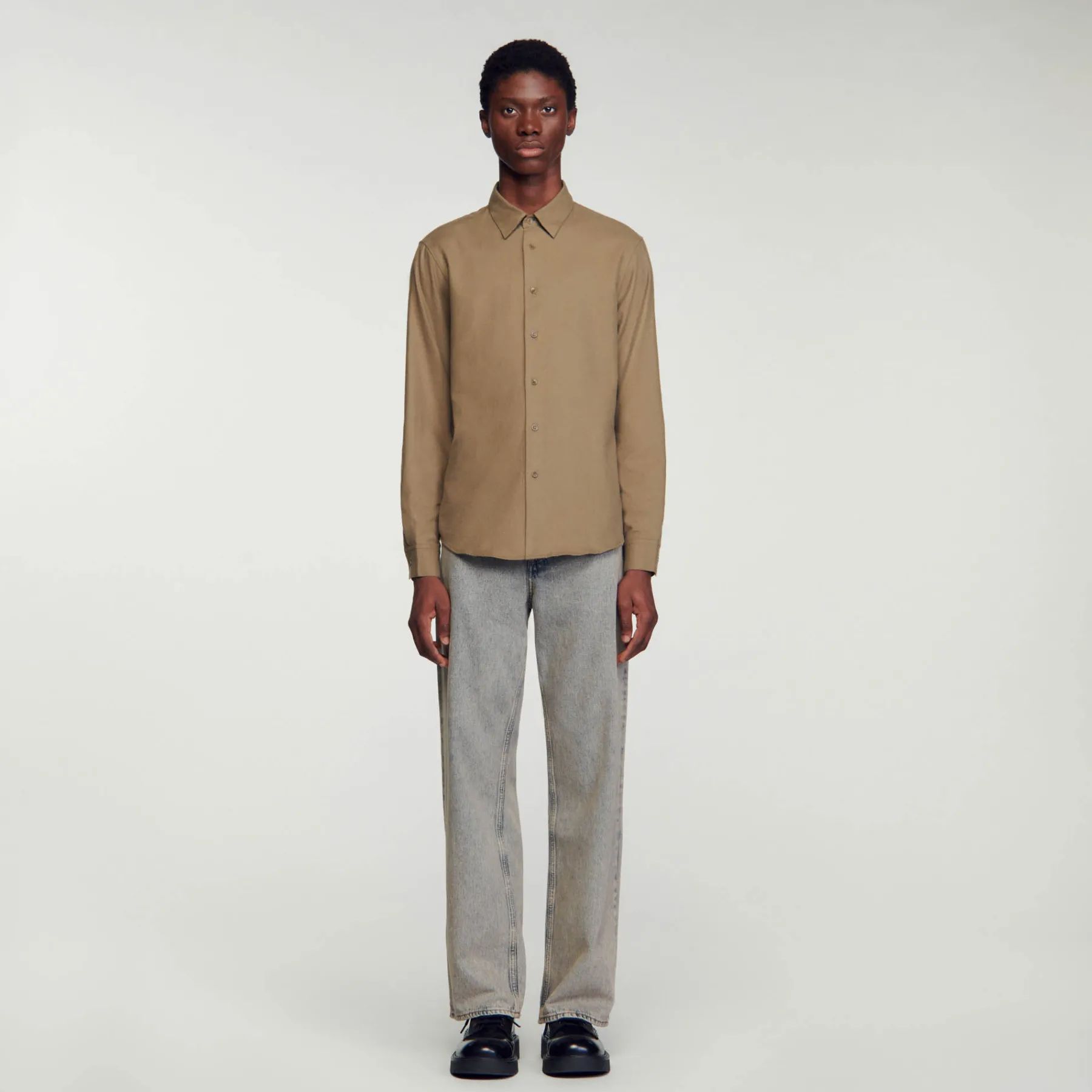 Flannel shirt with classic collar, long sleeves and button fastening.