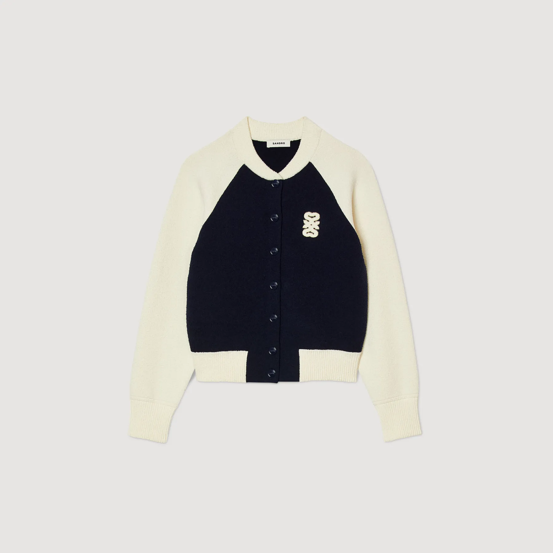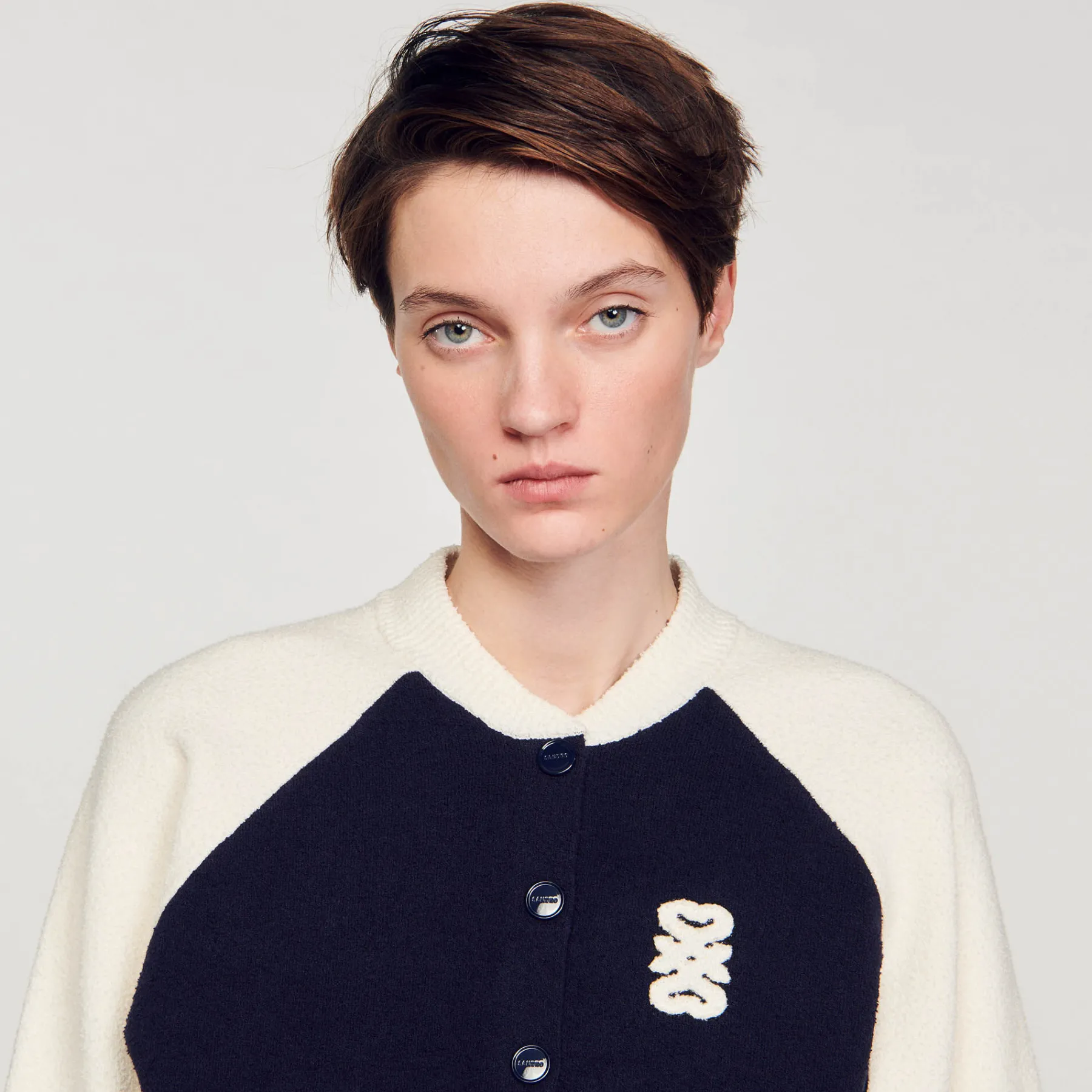 Varsity-style coatigan in a bouclé knit with long sleeves, a button fastening, and a double S logo on the chest.