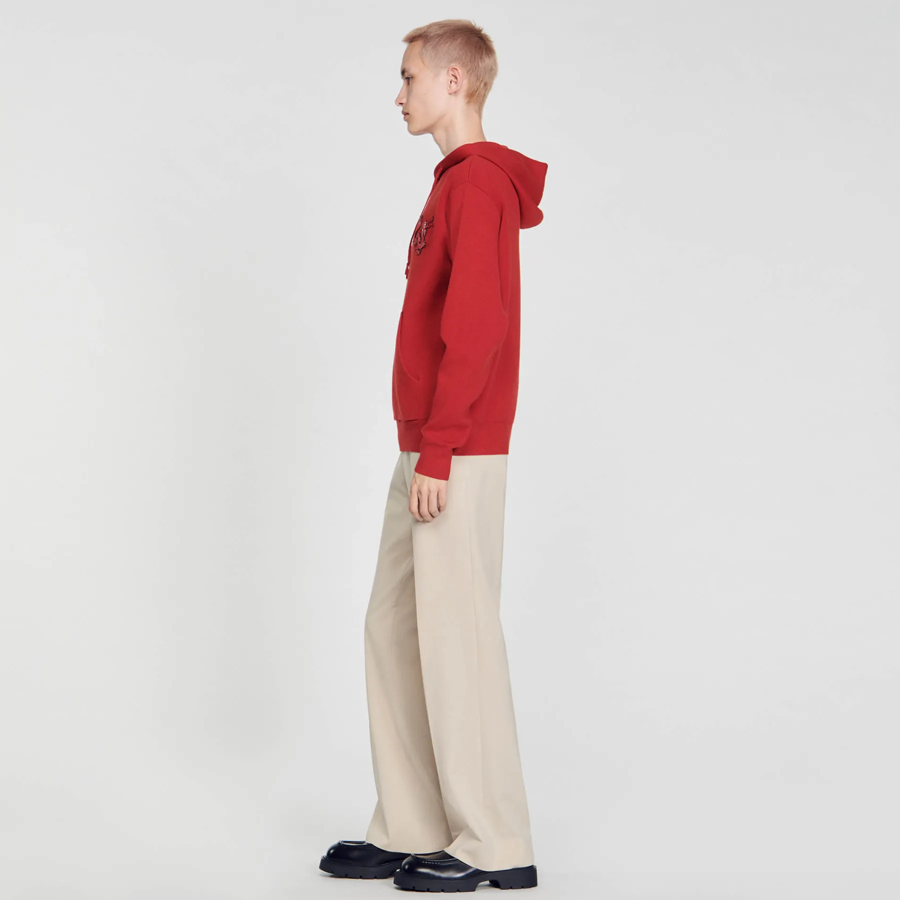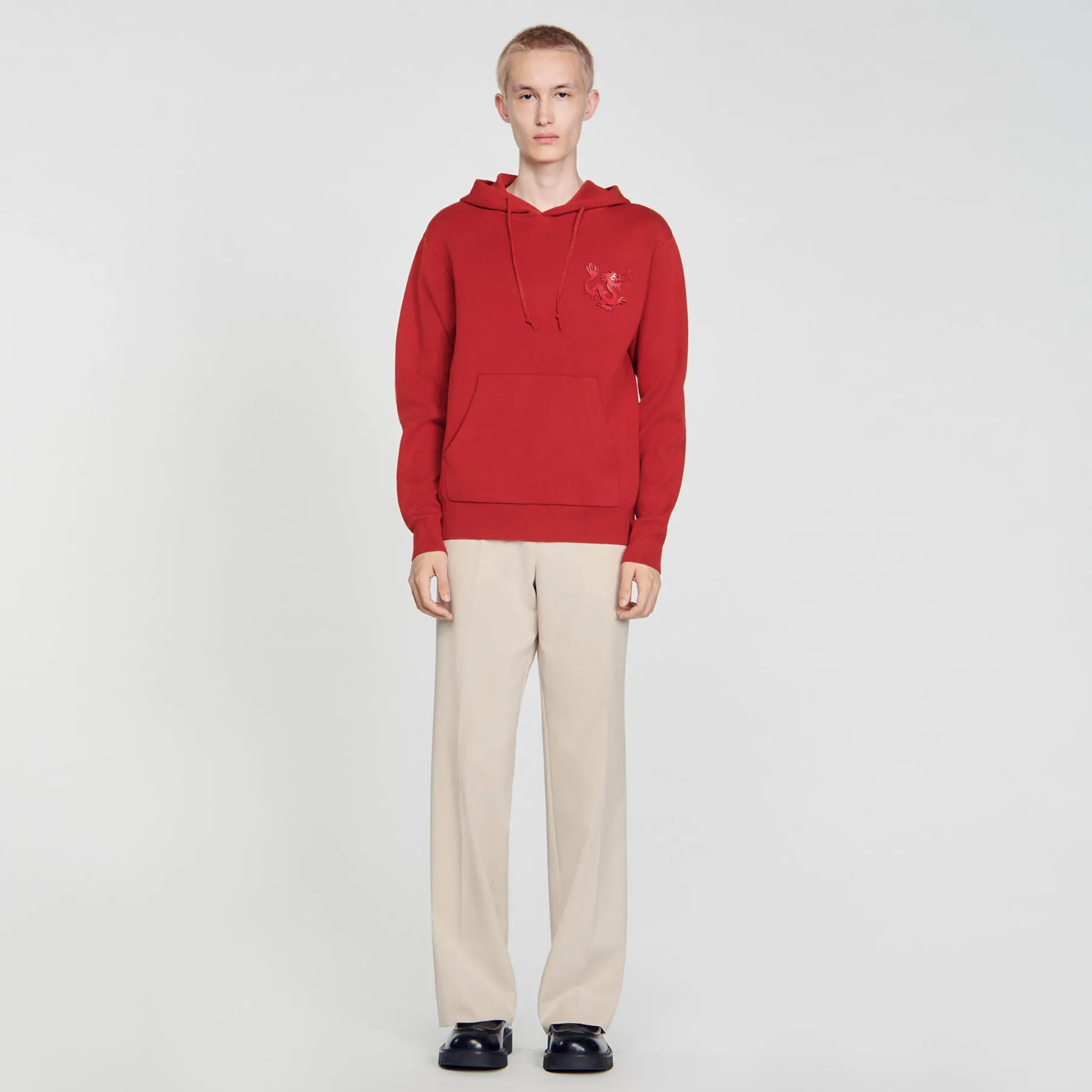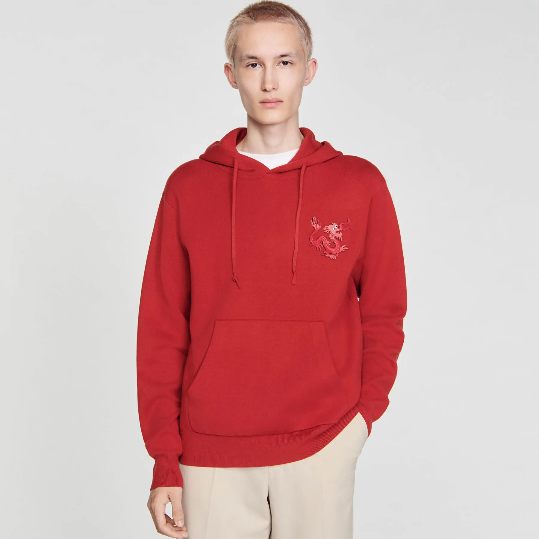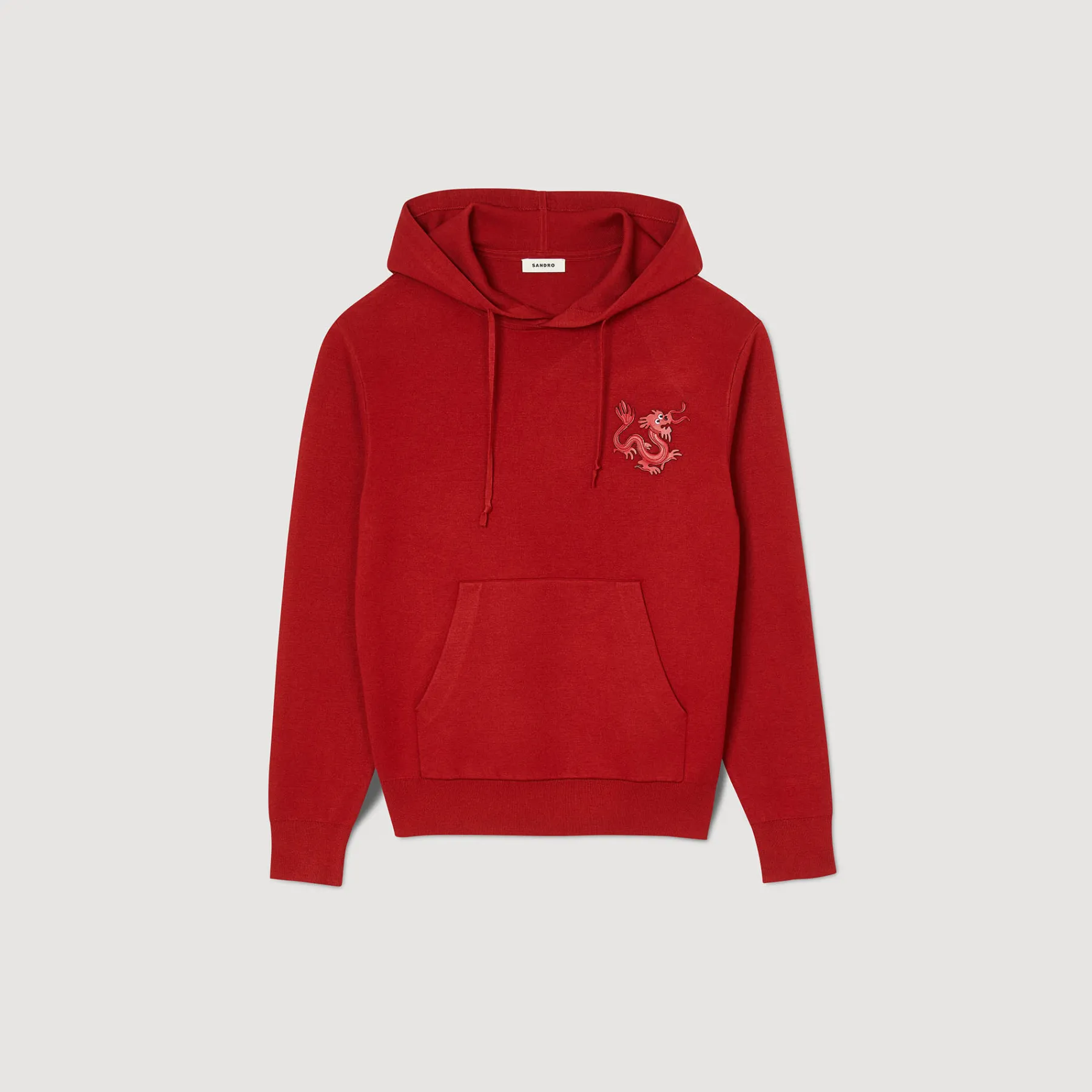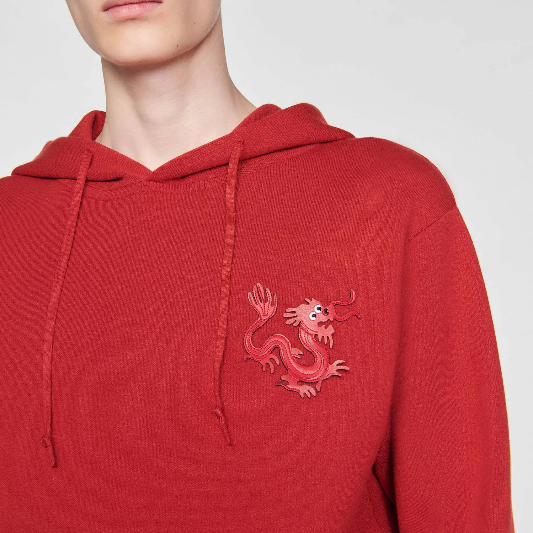 Hoodie with long sleeves decorated with a dragon patch on the chest.