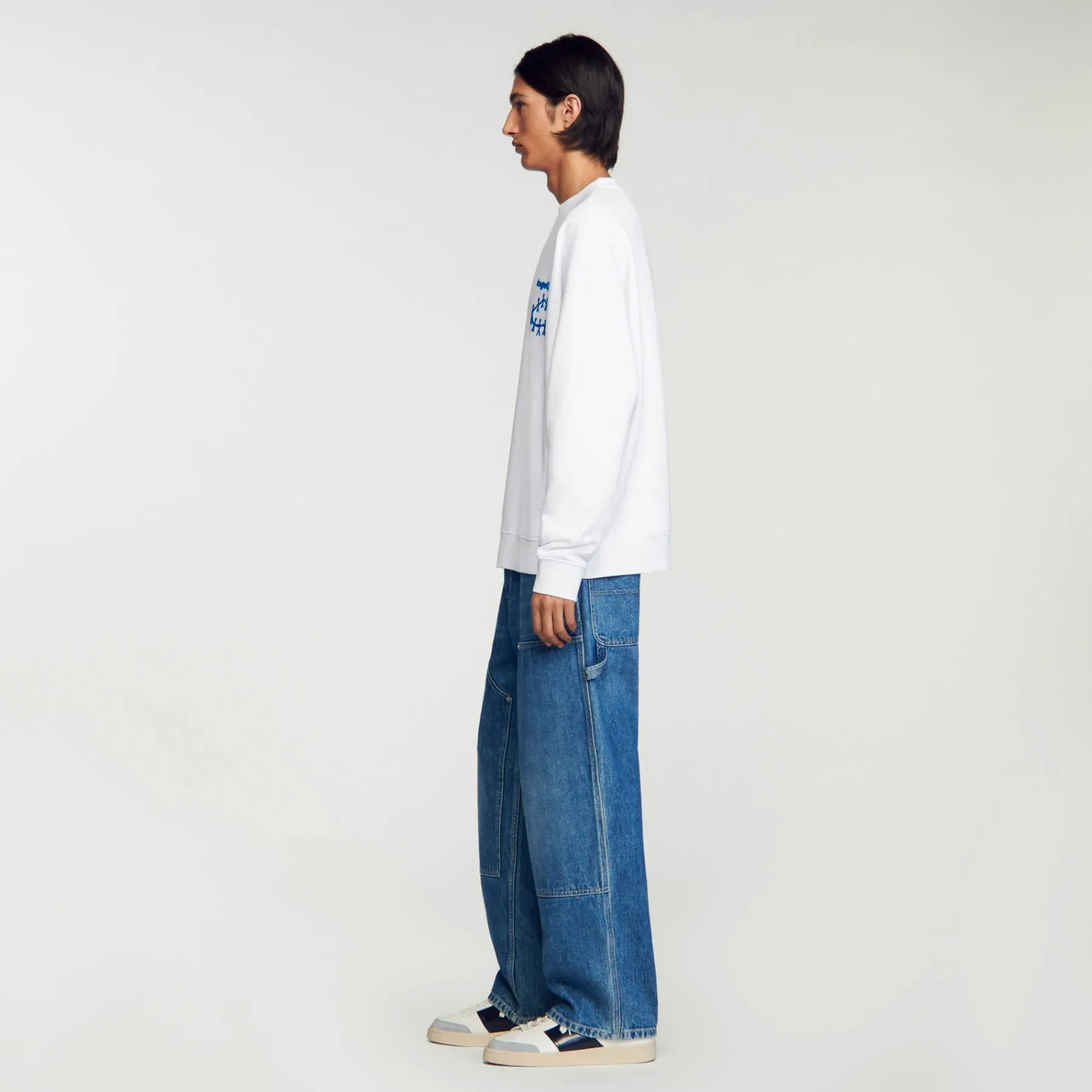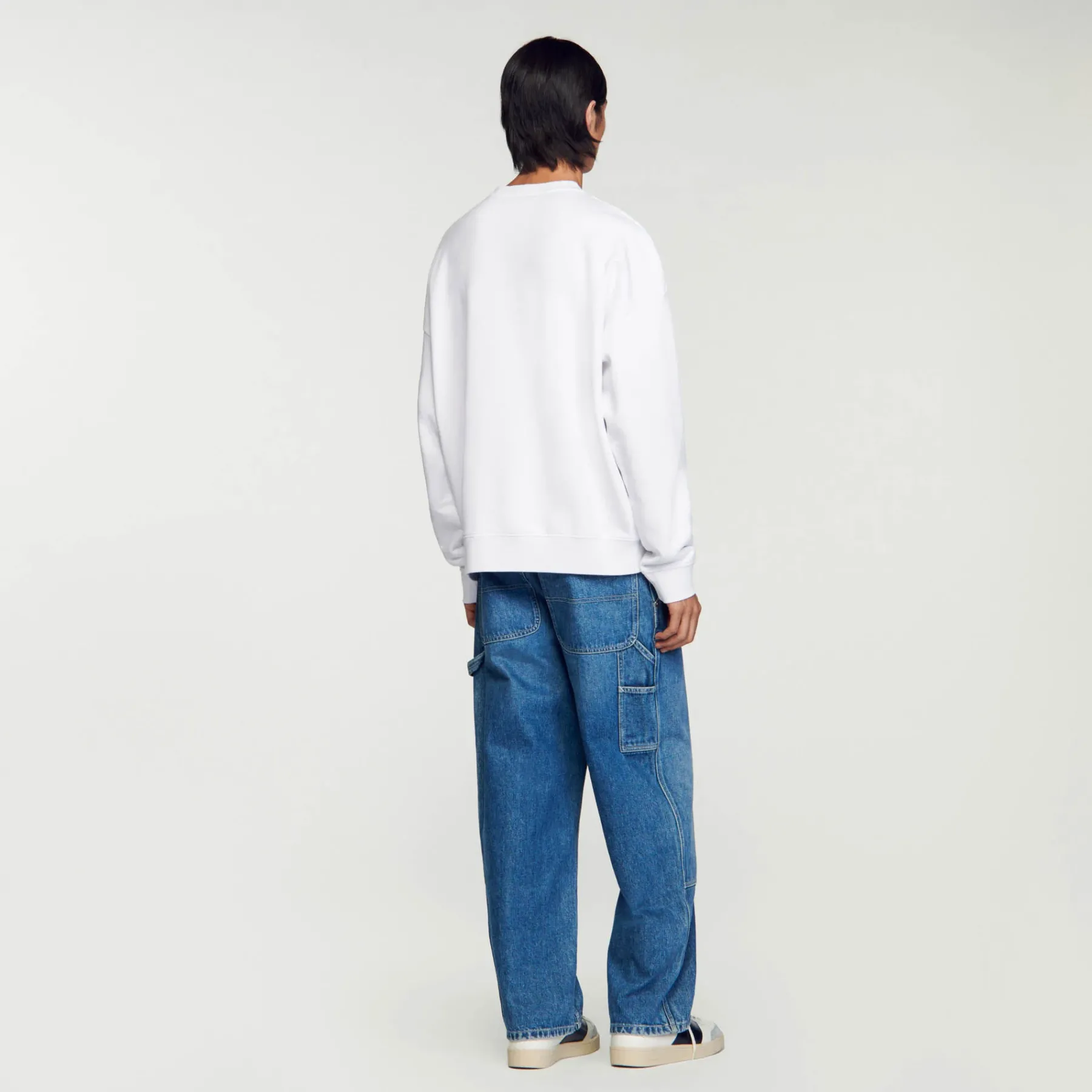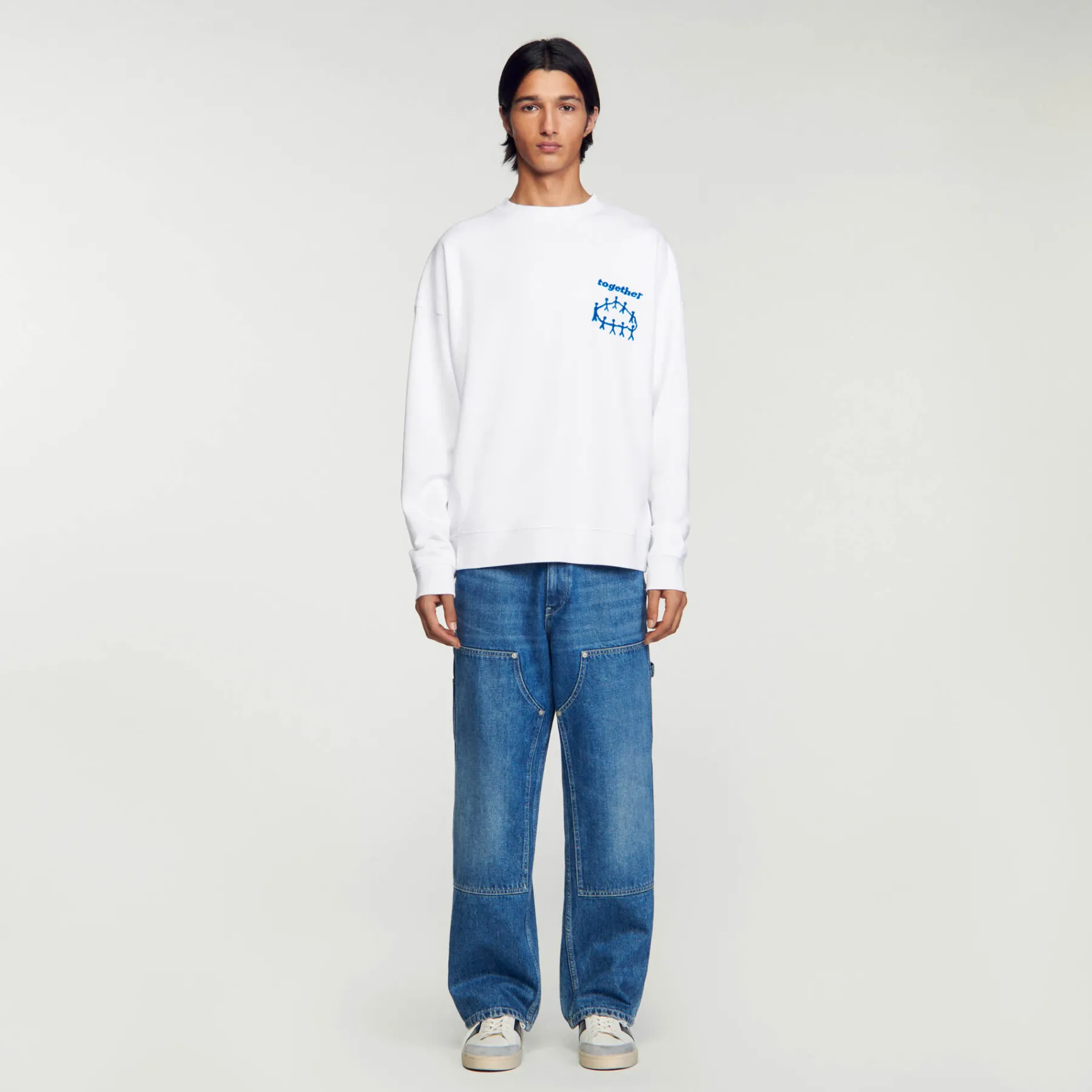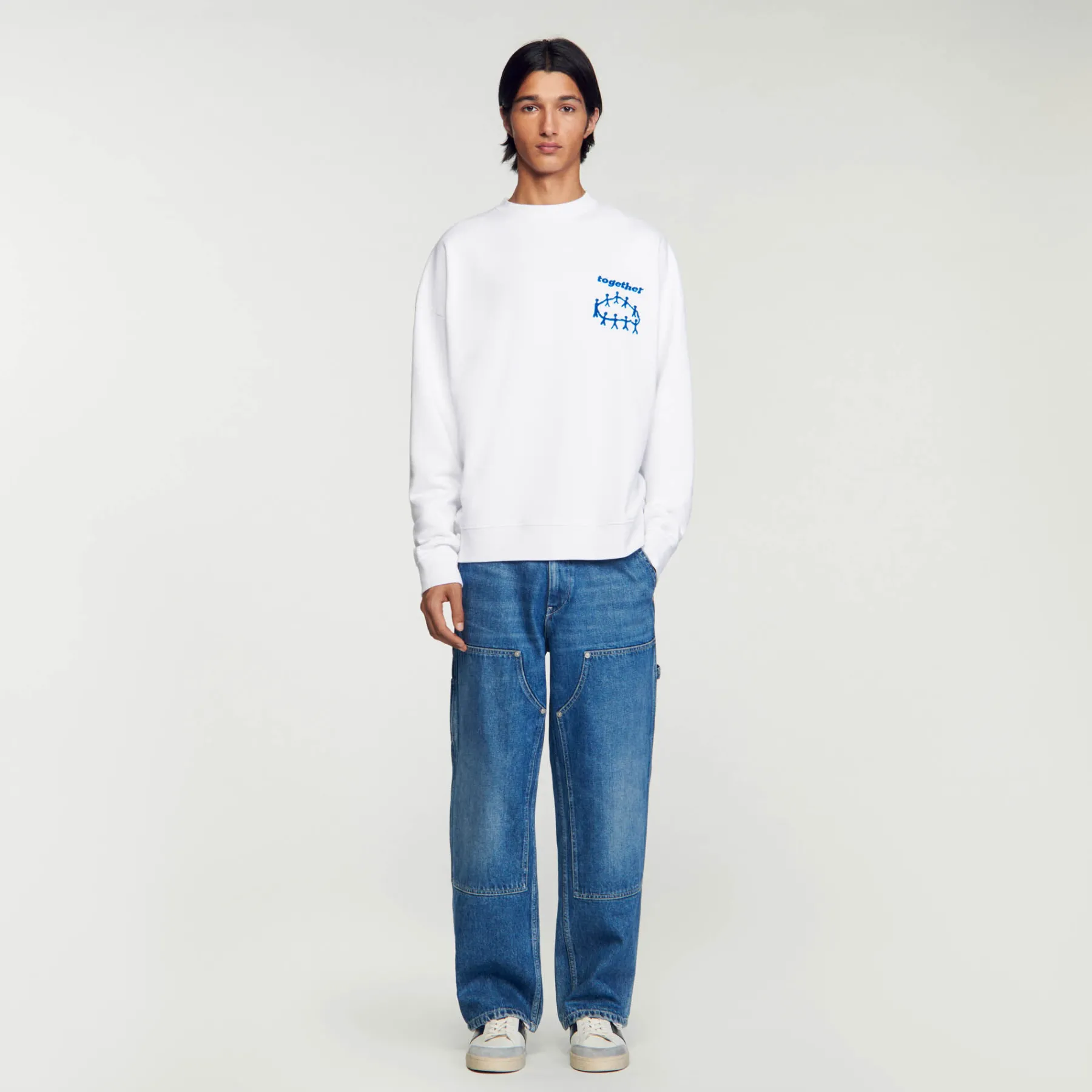 Round-neck, long-sleeved sweatshirt in brushed fleece, featuring Flock Together on the chest.