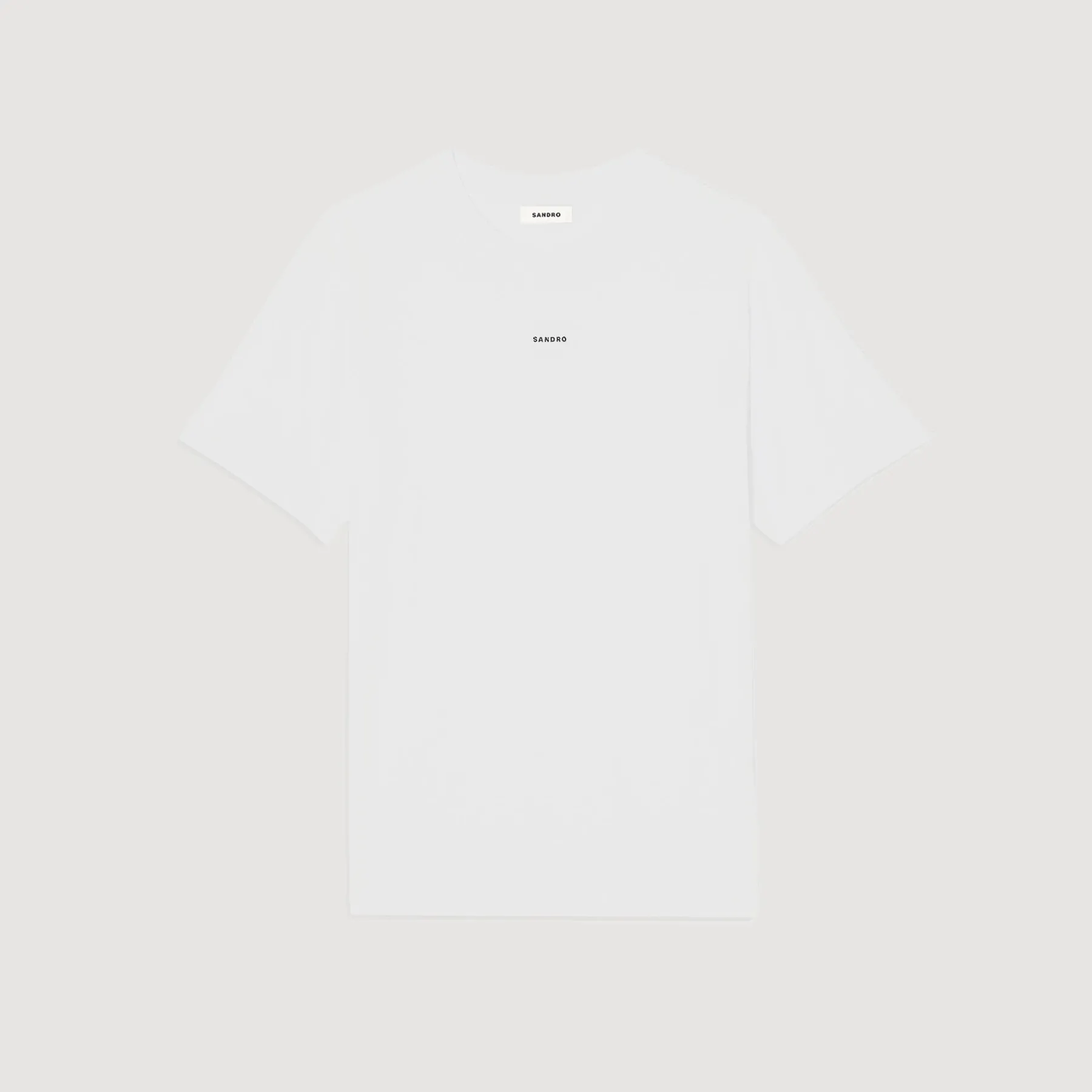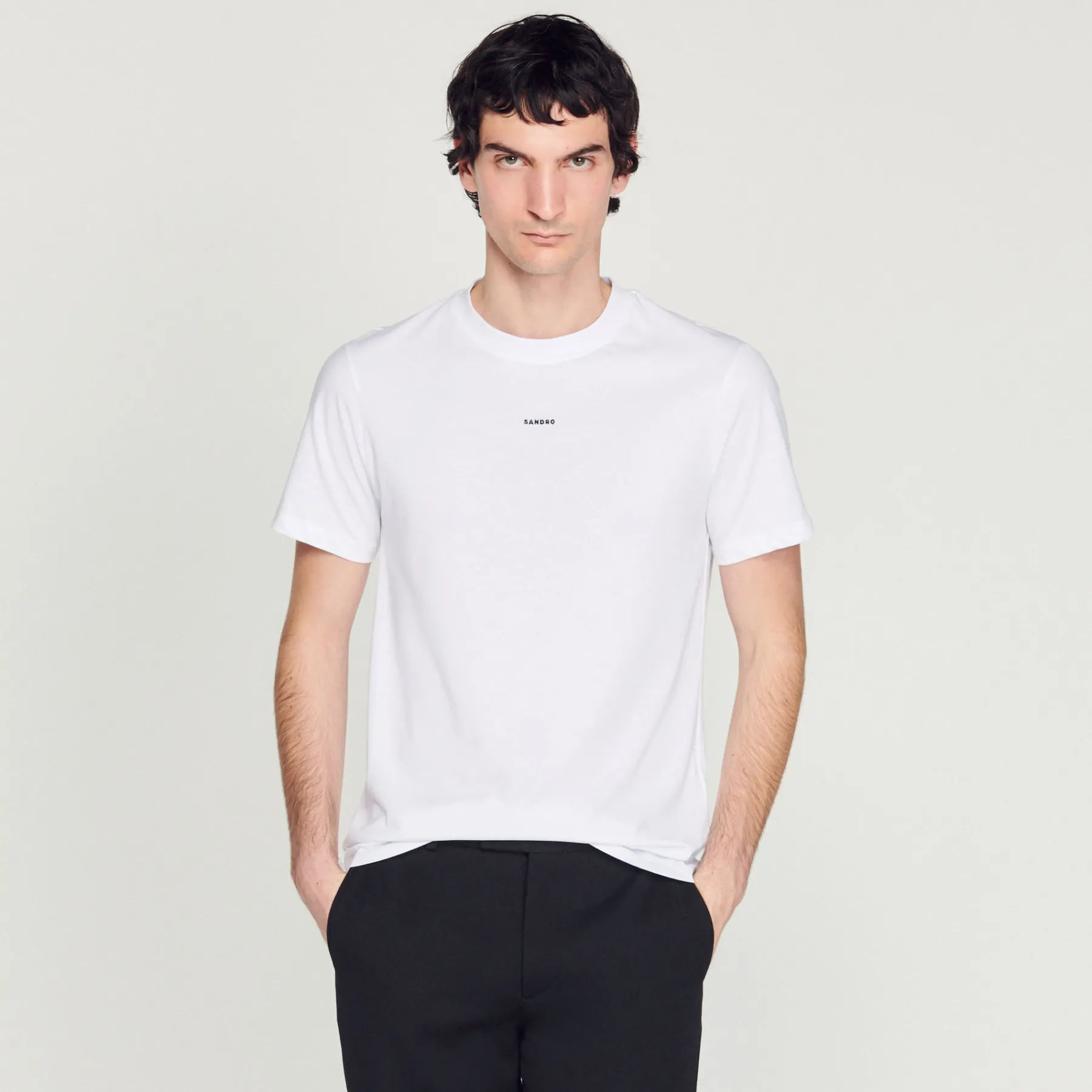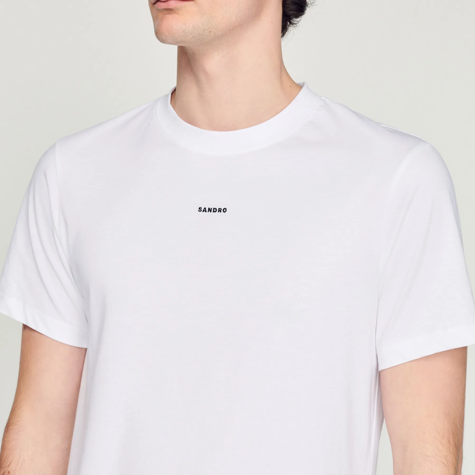 Round-neck short-sleeved T-shirt with SANDRO embroidery on the front.