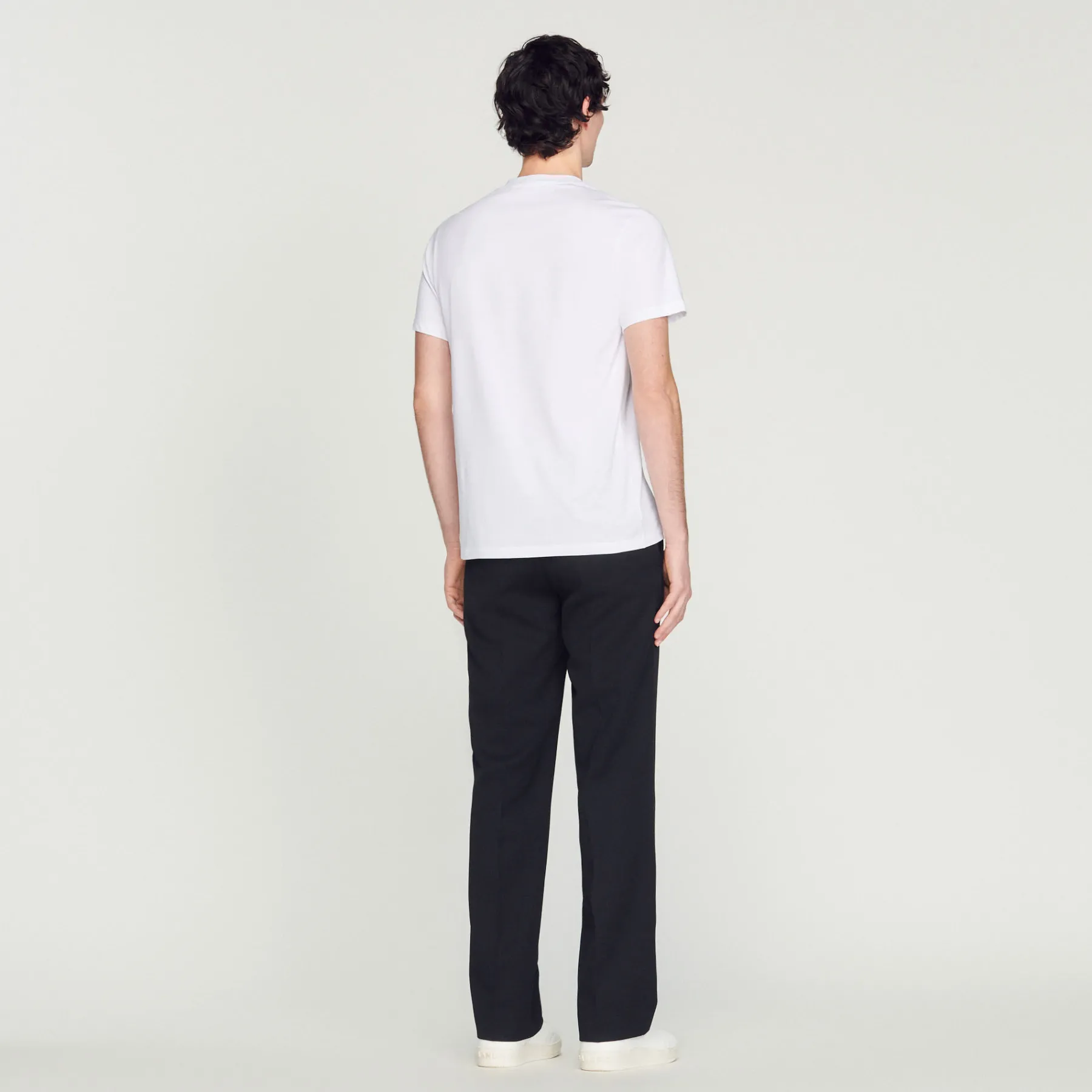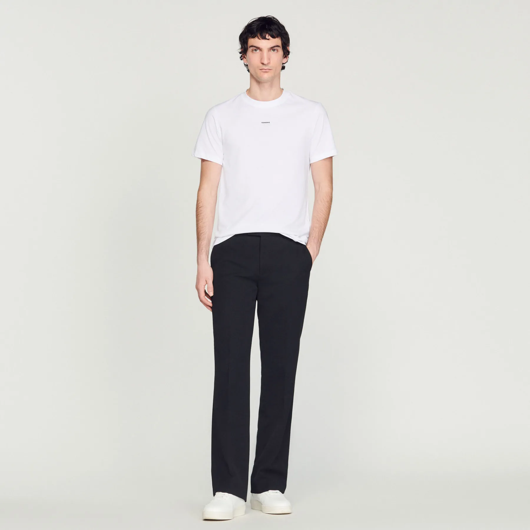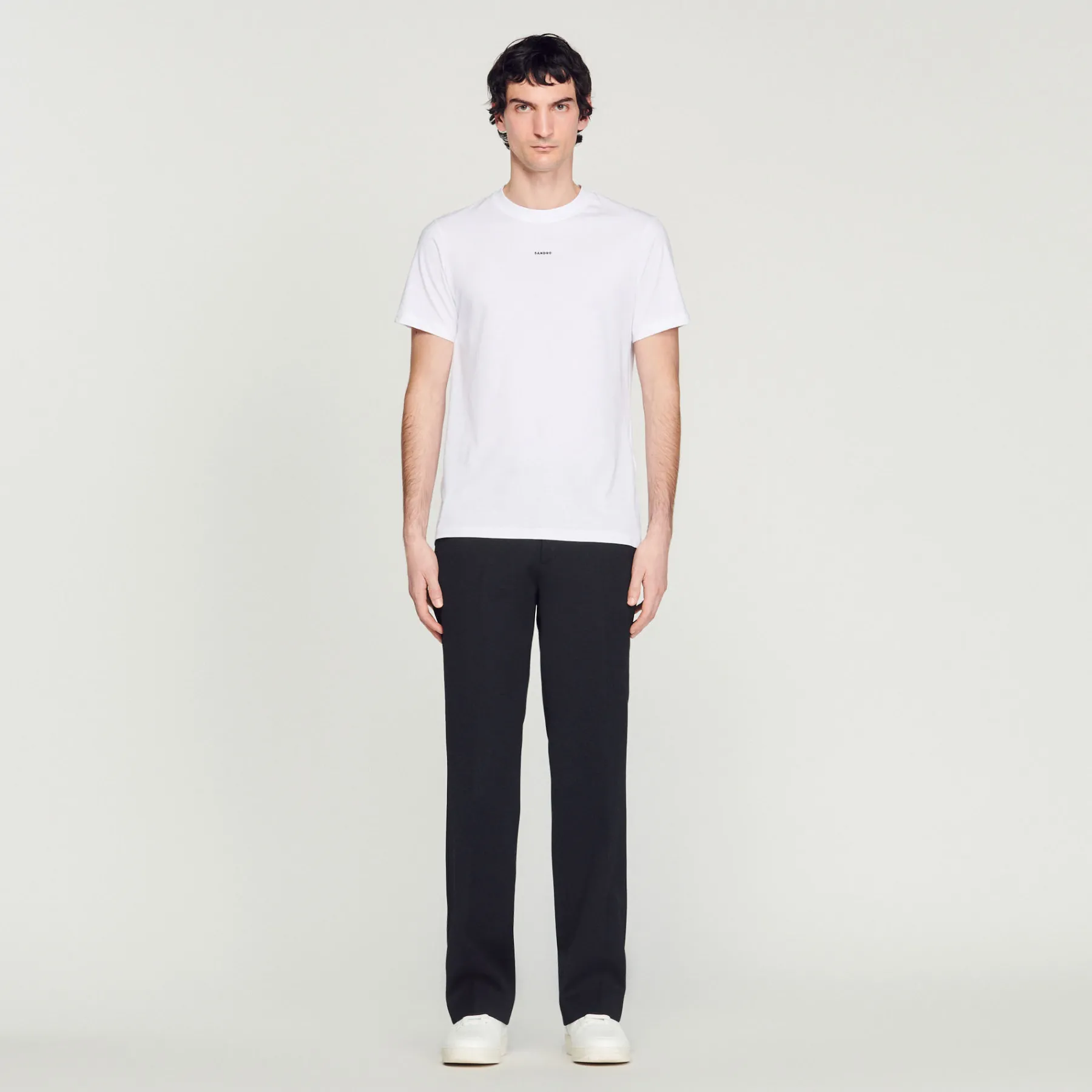 Round-neck short-sleeved T-shirt with SANDRO embroidery on the front.