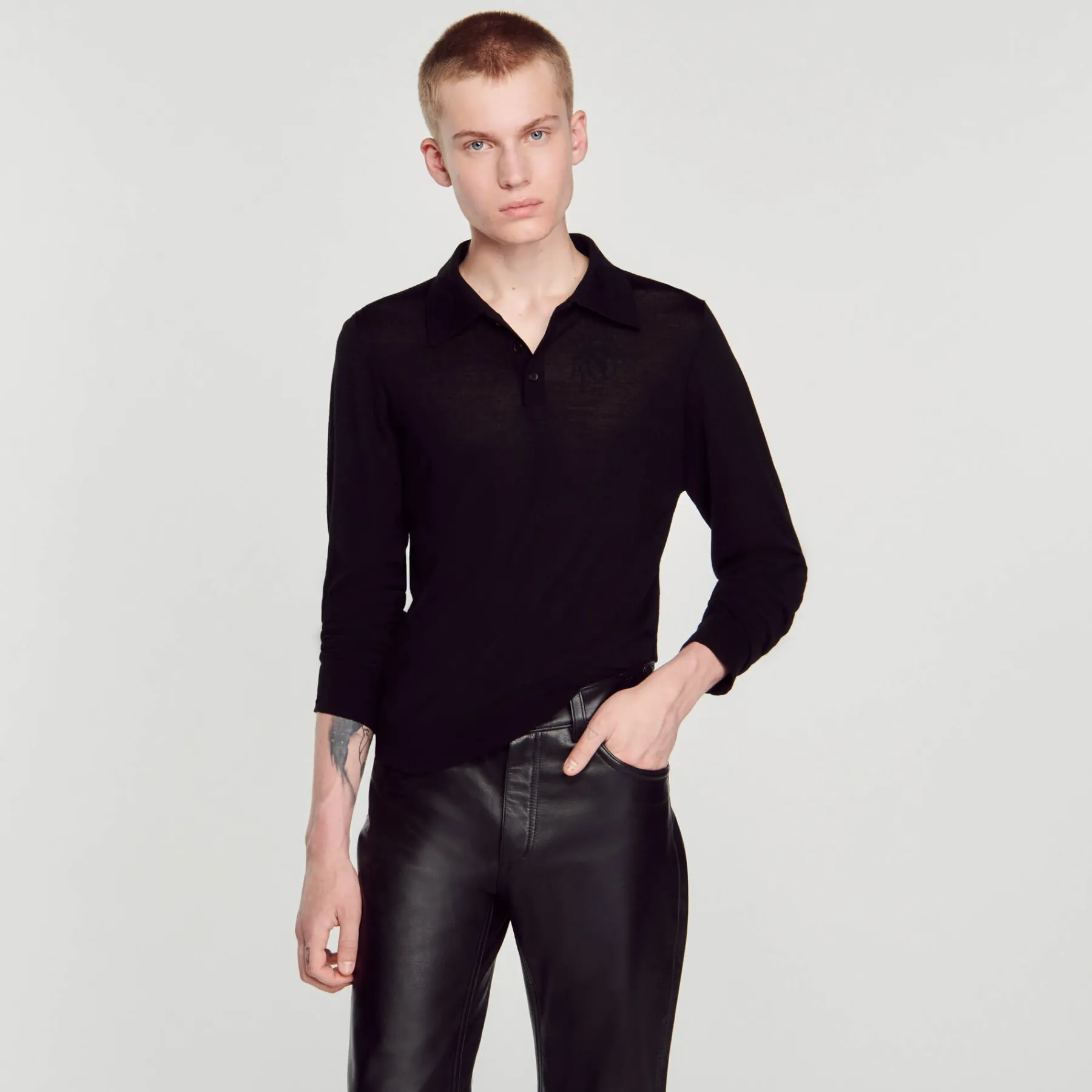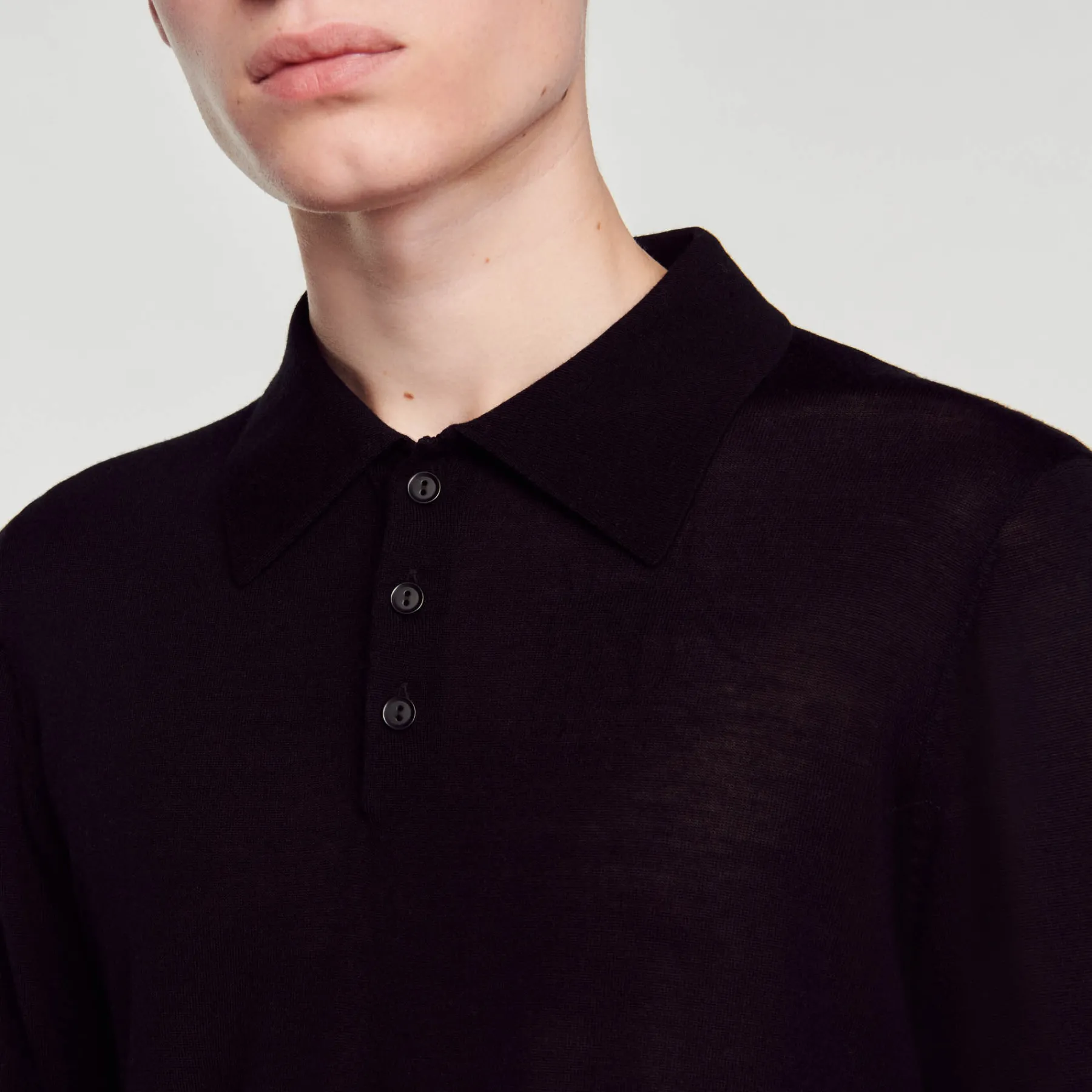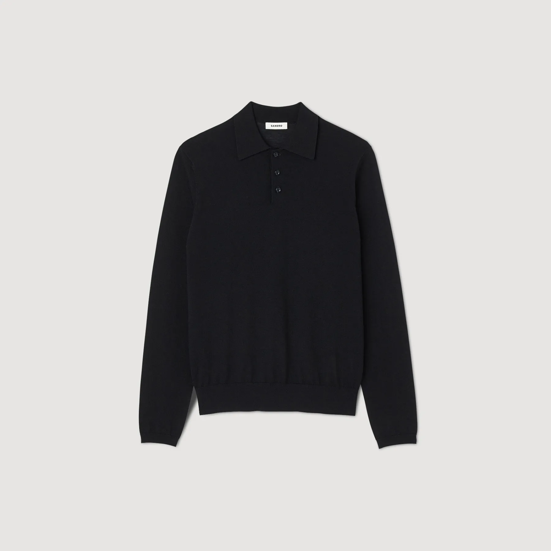 Fine knit polo shirt with button-down polo shirt neck and long sleeves.