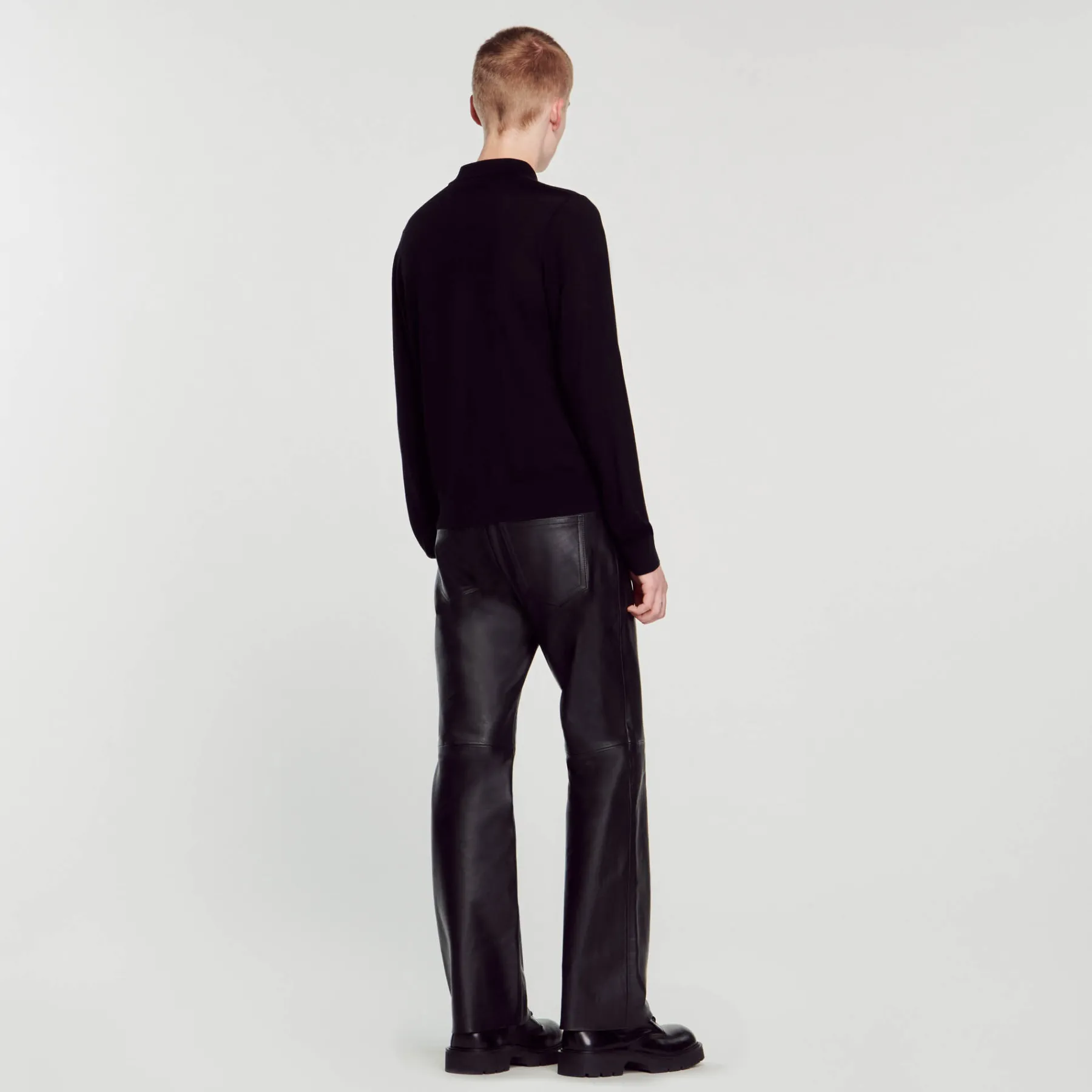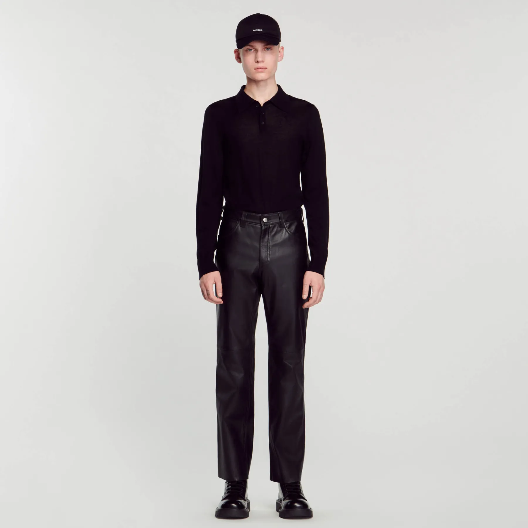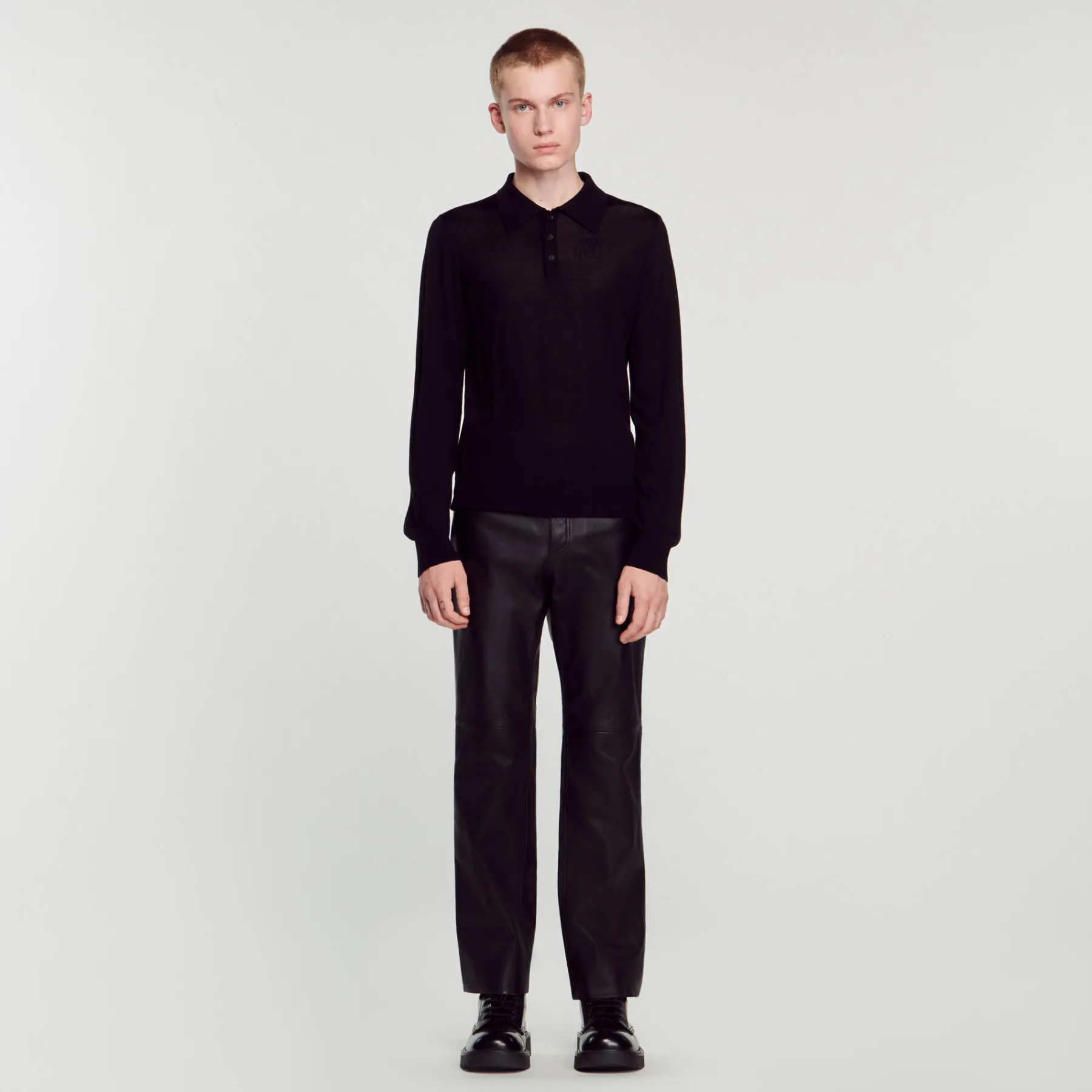 Fine knit polo shirt with button-down polo shirt neck and long sleeves.