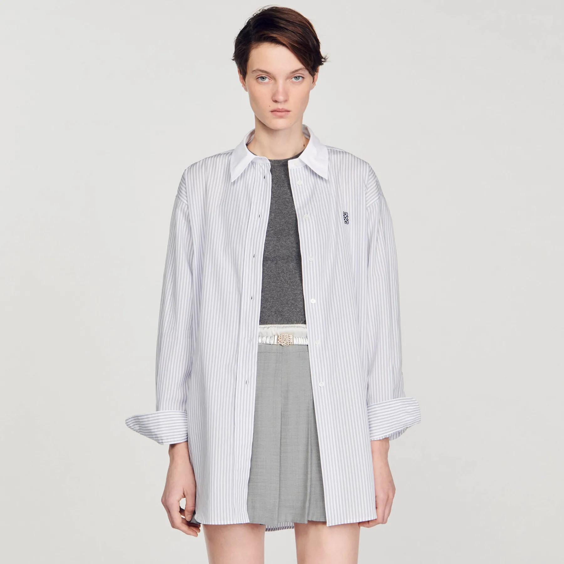 Oversized striped shirt with long sleeves, contrasting collar and embellished with contrasting double S embroidery on the chest.