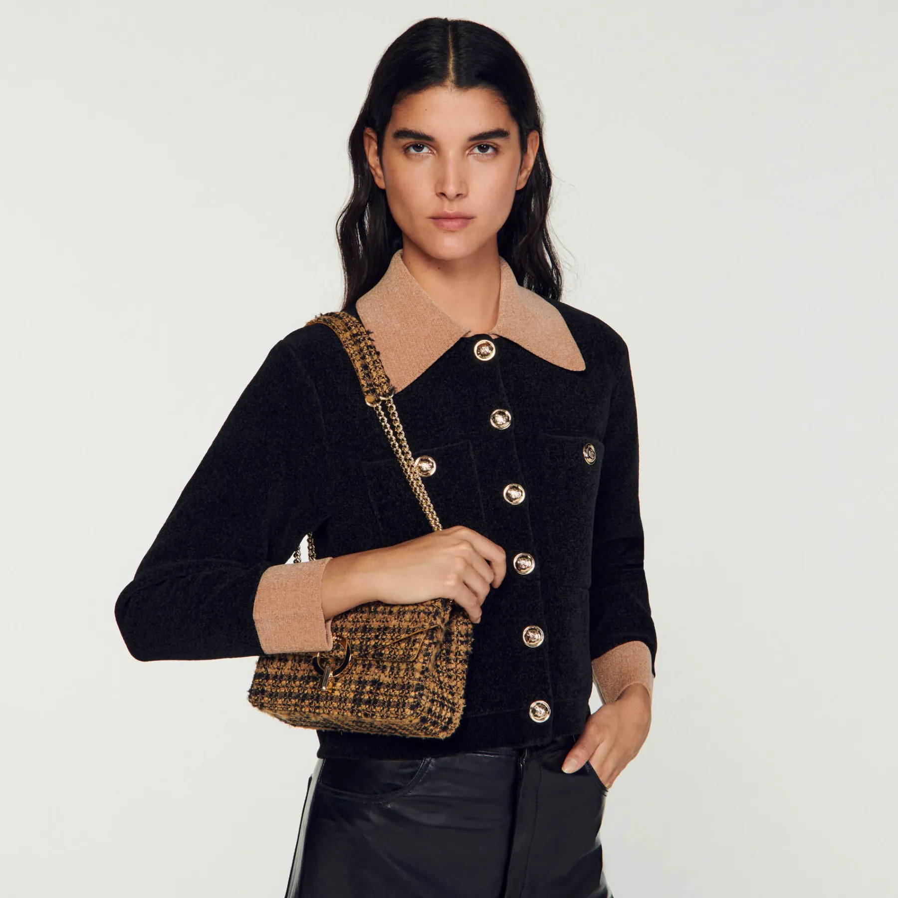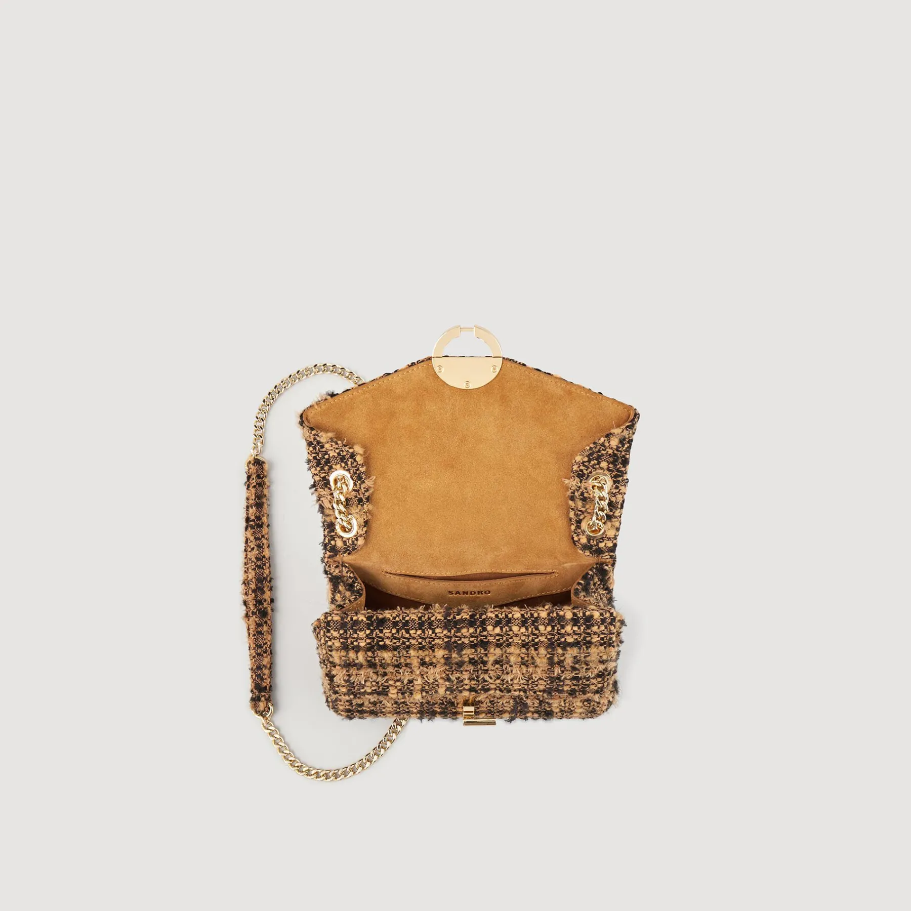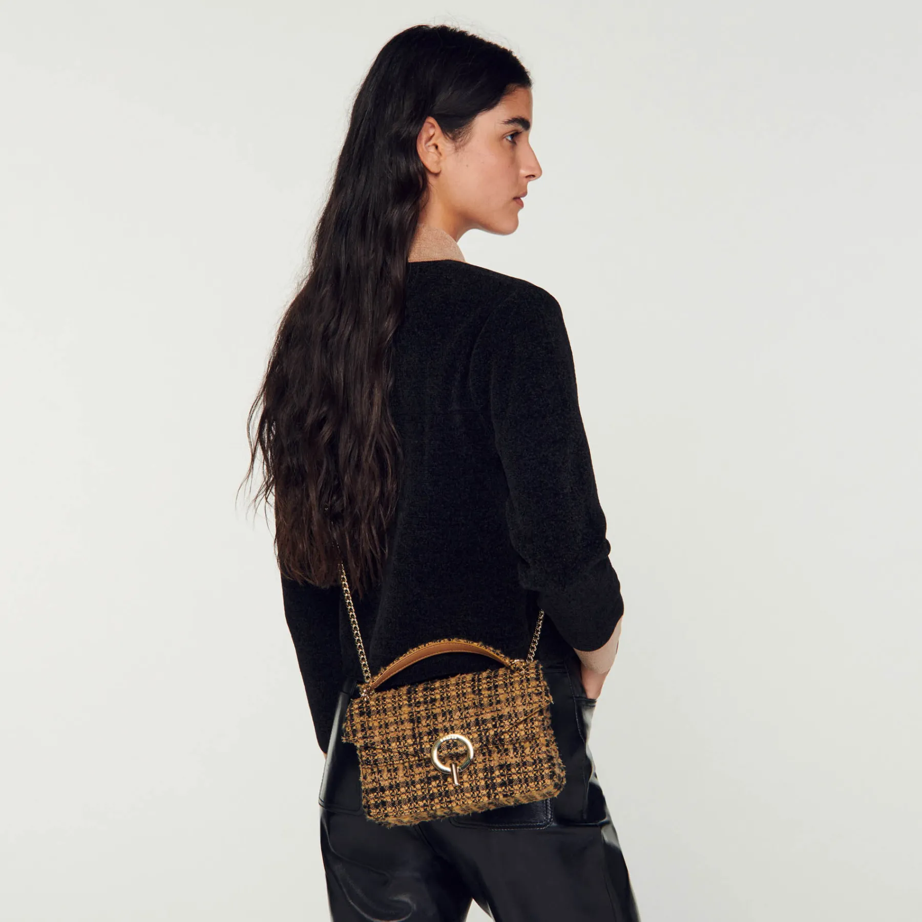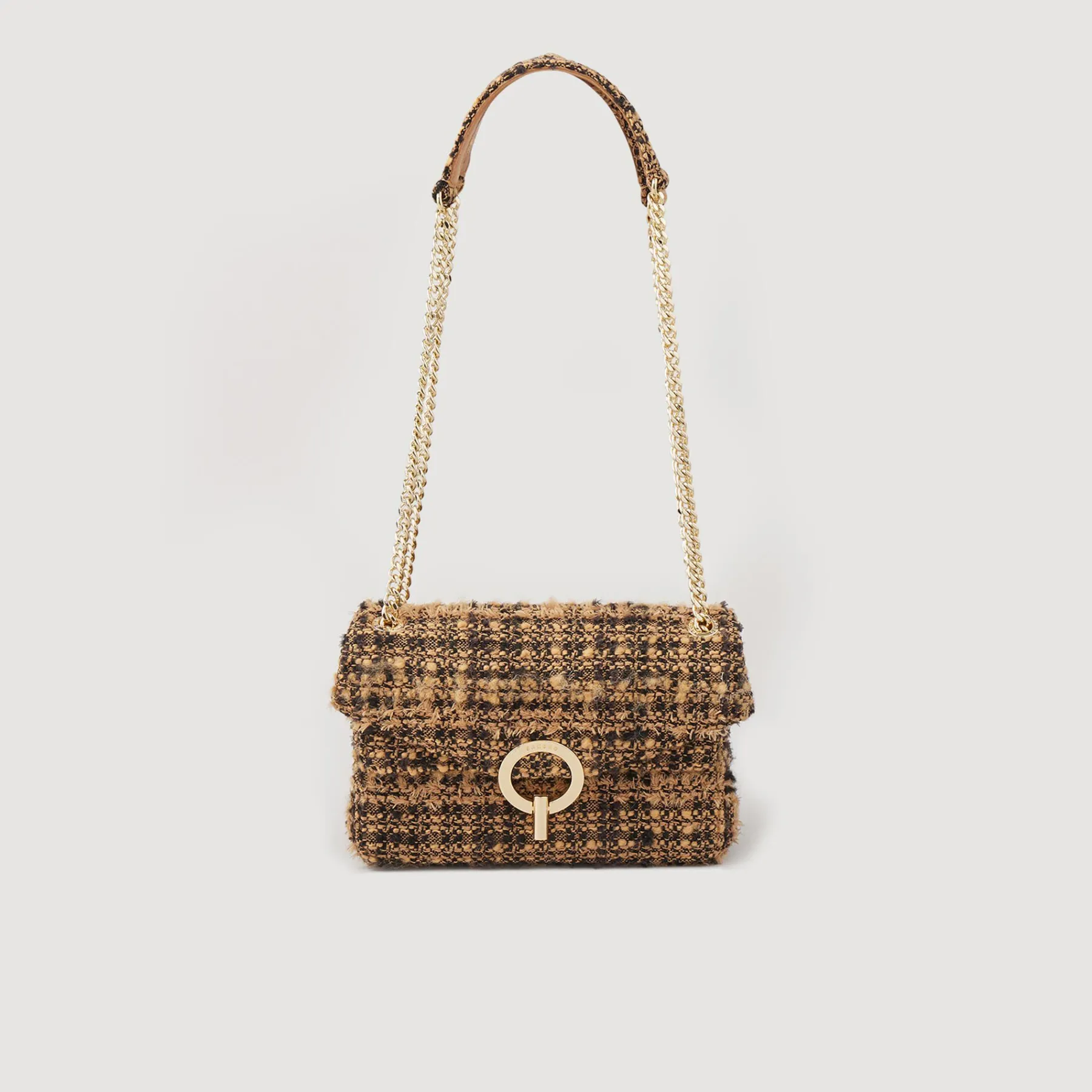 The classic YZA bag is now available in a tweed version. Fitted with a signature gold clasp and practical compartments, it features a chain and leather shoulder strap that can be worn in a variety of ways: long for crsbody wear or doubled up for carrying on the shoulder.